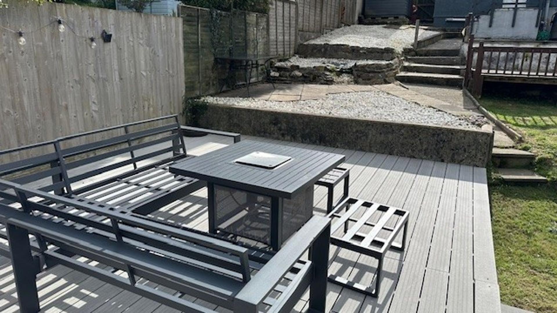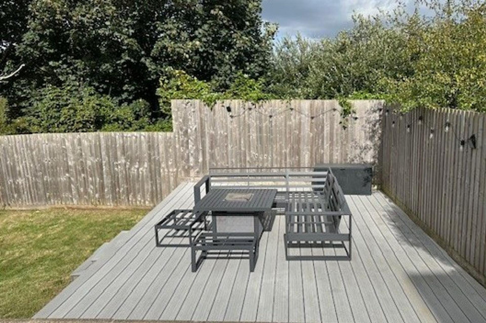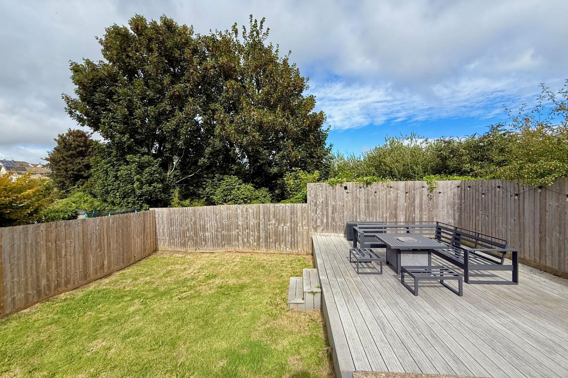 - Enclosed Rear Garden Over Three Tiers With Decking, Lawn & Patio