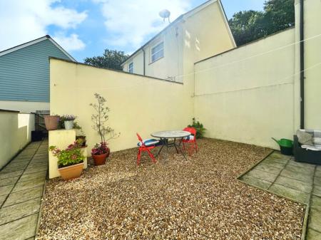 Outside - The garden offers a low maintenance outdoor space, finished with a mix of gravel and paved areas-perfect for placing seating or entertaining. Enclosed by walls for privacy, it enjoys a sunny aspect and is decorated with a variety of potted plants, adding greenery and charm.