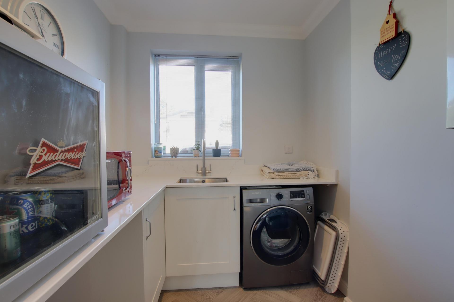 Double glazed window to front elevation. Base cupboards. Worktops with inset sink unit. Space for washing machine and additional kitchen appliances.