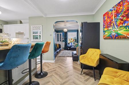 The spacious lounge faces the front of the property, has a built-in cupboard and flows through to the beautiful kitchen/diner which has windows to the rear and a door to the side. The kitchen has been fitted with a modern range of units, including a breakfast bar, and has a built-in double oven, gas hob with extractor over and ample space for further appliances. The adjacent utility provides further units and space for a washing machine and tumble dryer.
