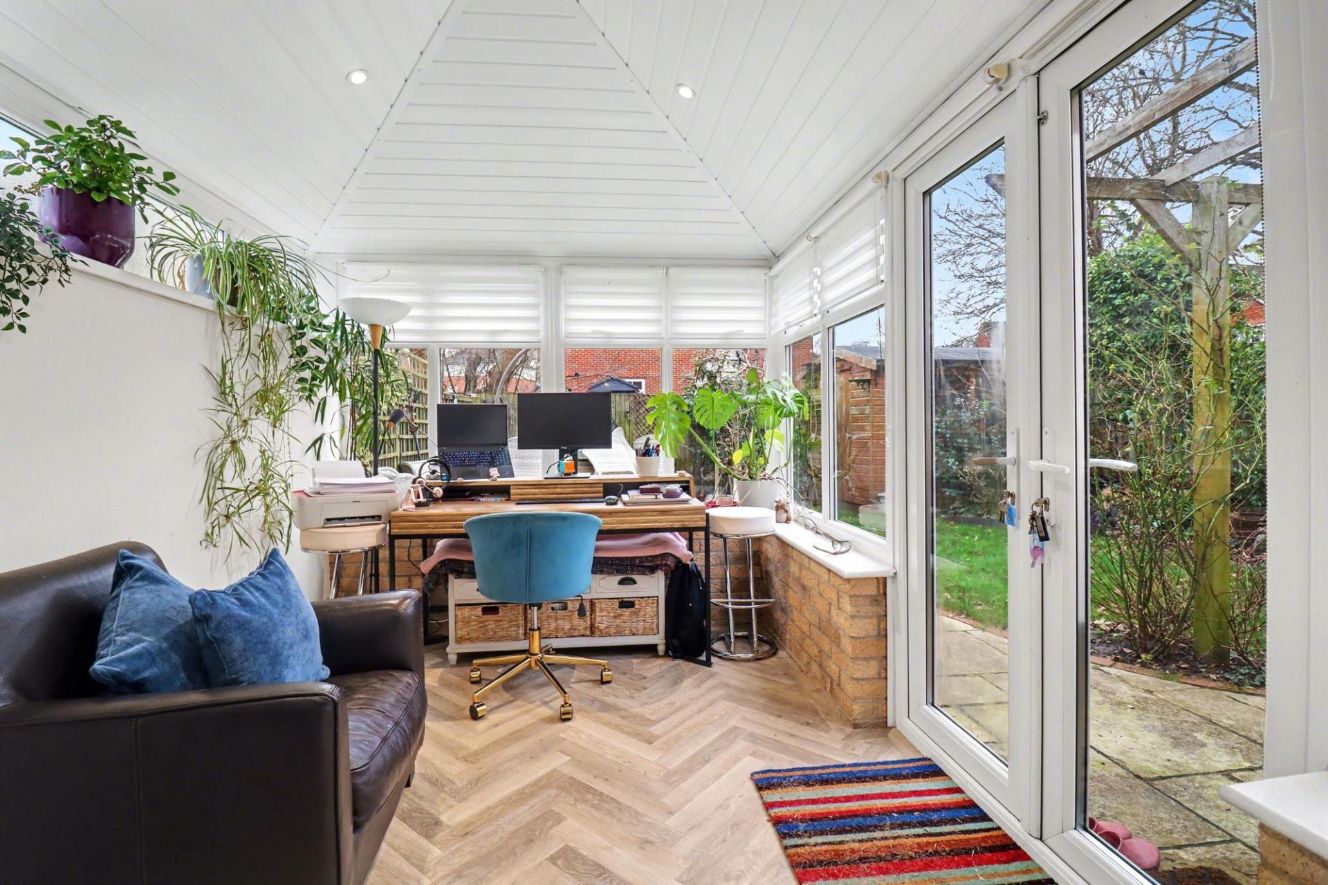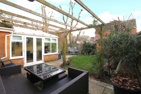 The conservatory is currently being used as a study/family room and enjoys French doors opening out to the rear garden.