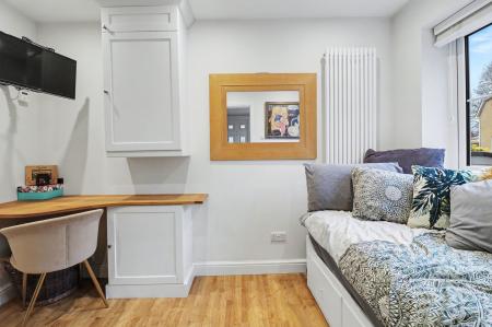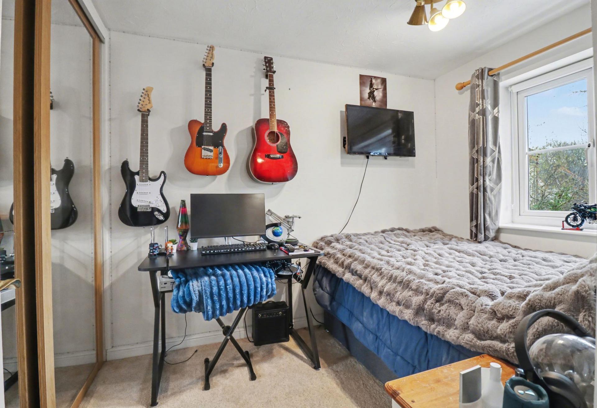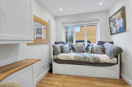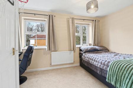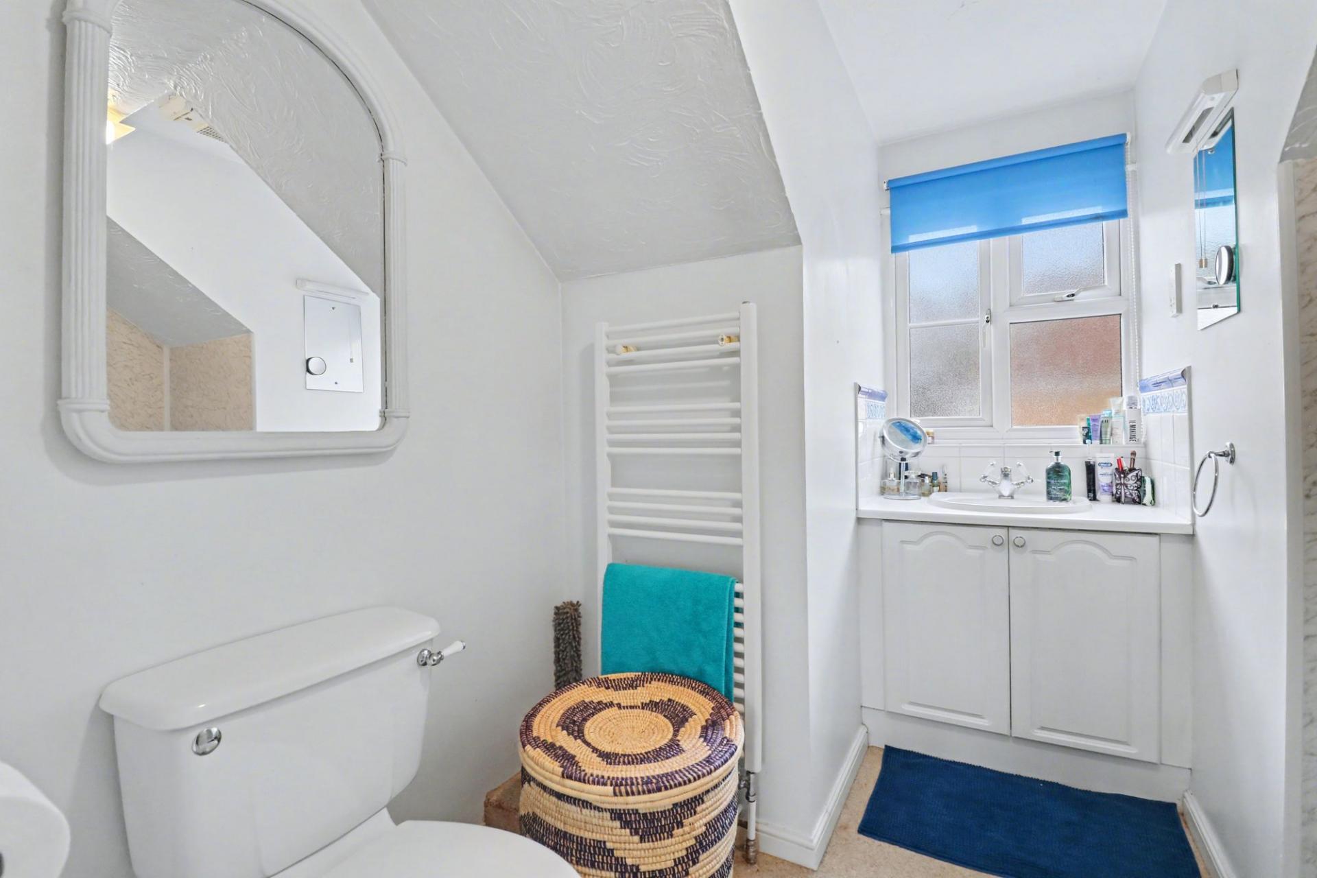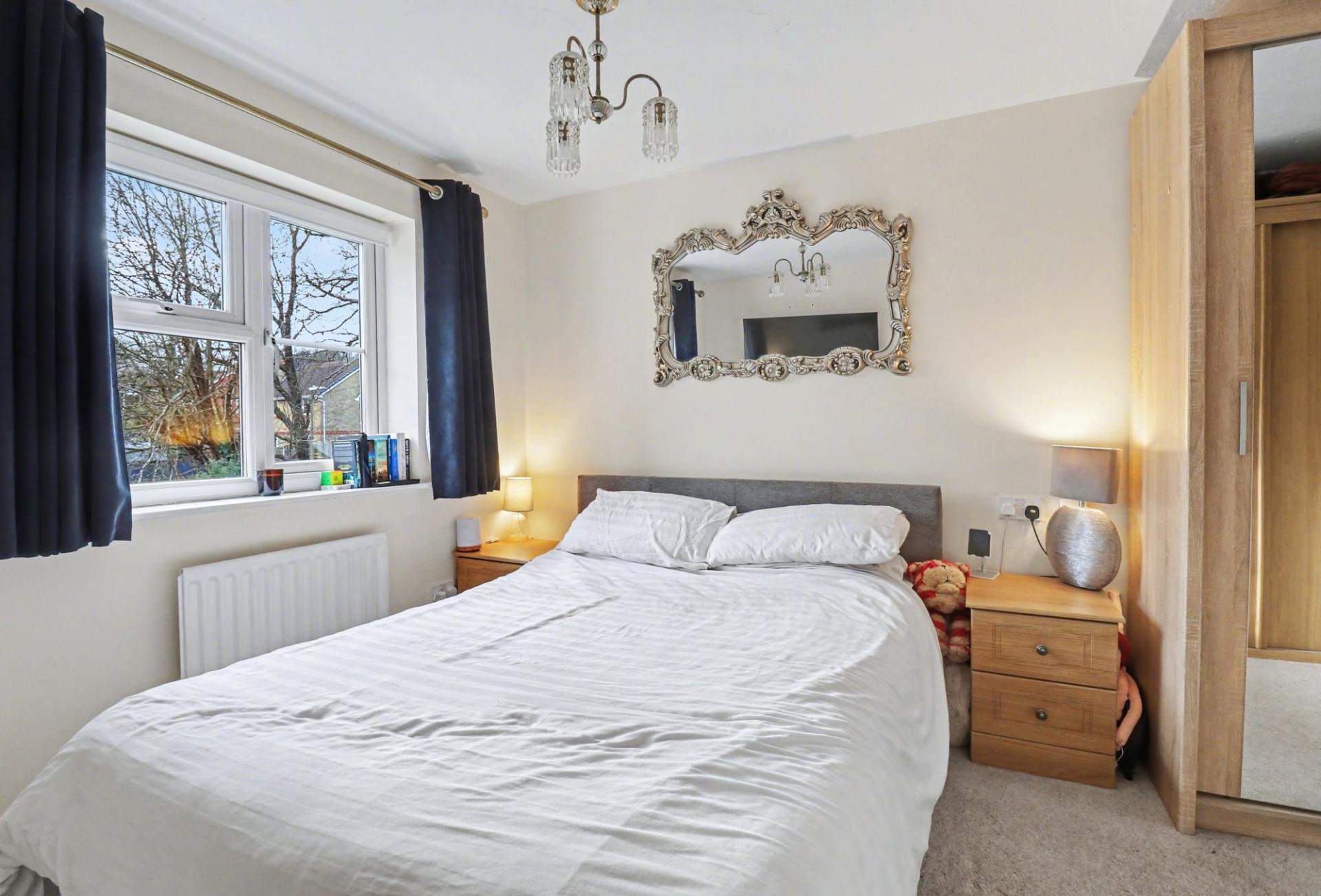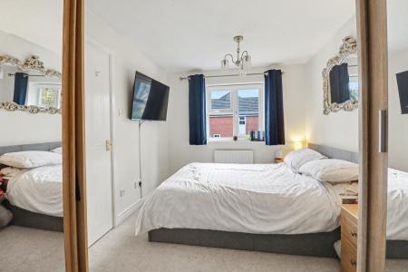 The generous master bedroom overlooks the rear garden and has an en-suite shower room with a window to the front. The second bedroom features two windows to the front and a built-in cupboard, whilst the third bedroom has a window to the rear and a fitted wardrobe.
