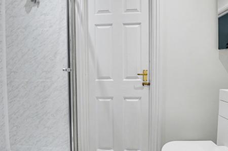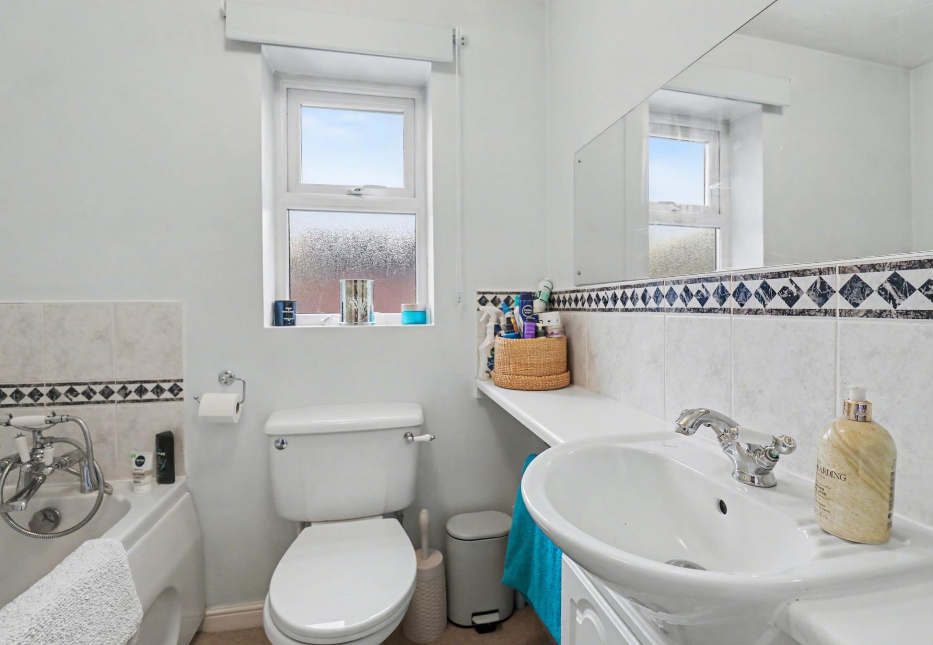 The family bathroom comprises a panel enclosed bath with shower attachment, vanity wash hand basin, WC and a window to the rear.