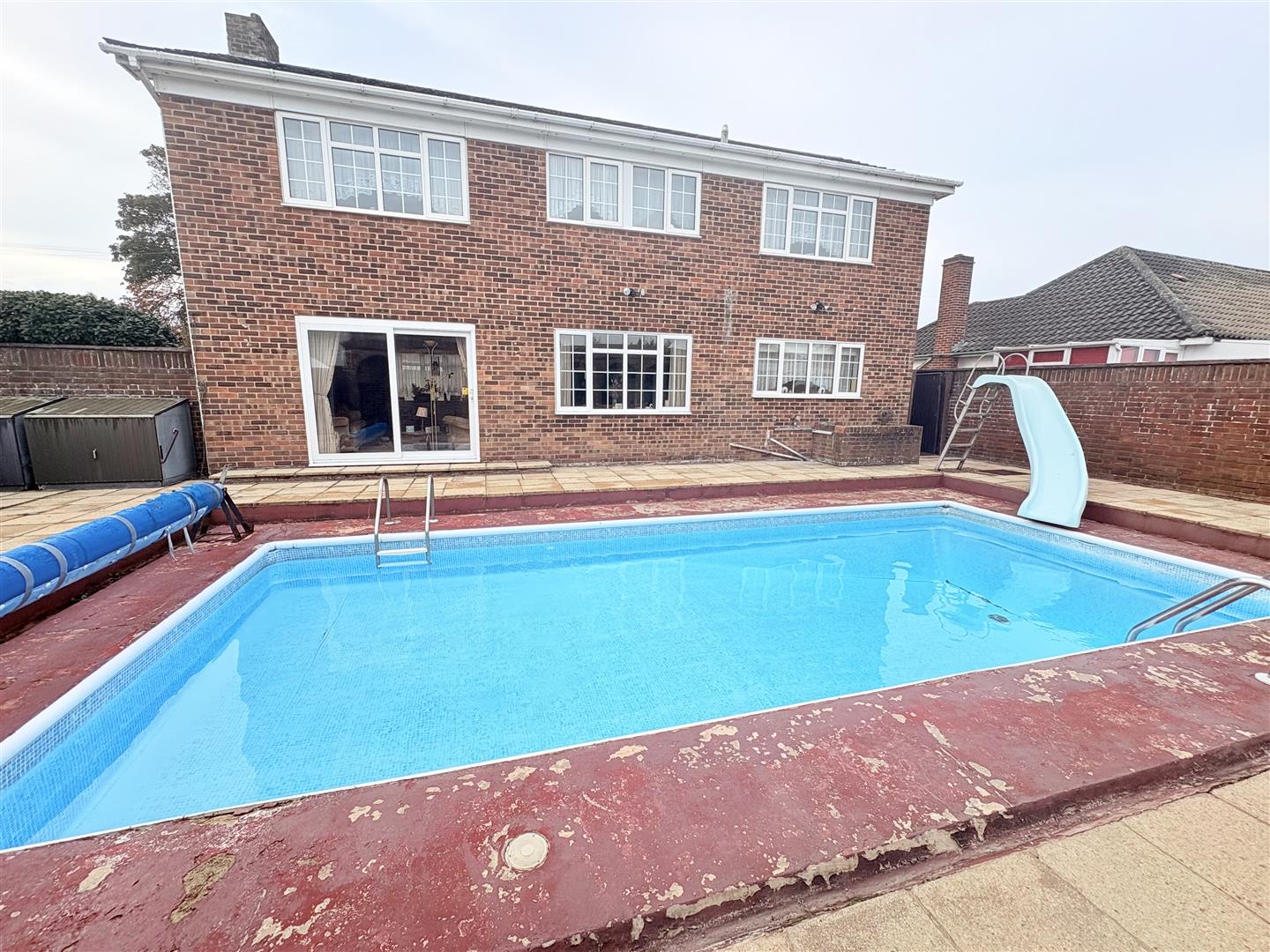 Situated in a prominent position, this five bedroom detached residence although requiring updating offers bags of potential. The property has an external heated pool (requires new boiler), pool/entertainment room and double garage. Inside the property has Lounge open to Dining room/ Kitchen/Breakfast room, ground floor Bedroom 5 or Study and downstairs Cloakroom. to the first floor there are four double bedrooms, two with some sea views and the Master having an En-Suite Dressing and Bathroom, family Bathroom with full suite. This property has been in the same ownership for many decades and we strongly recommend an early internal viewing to avoid disappointment.