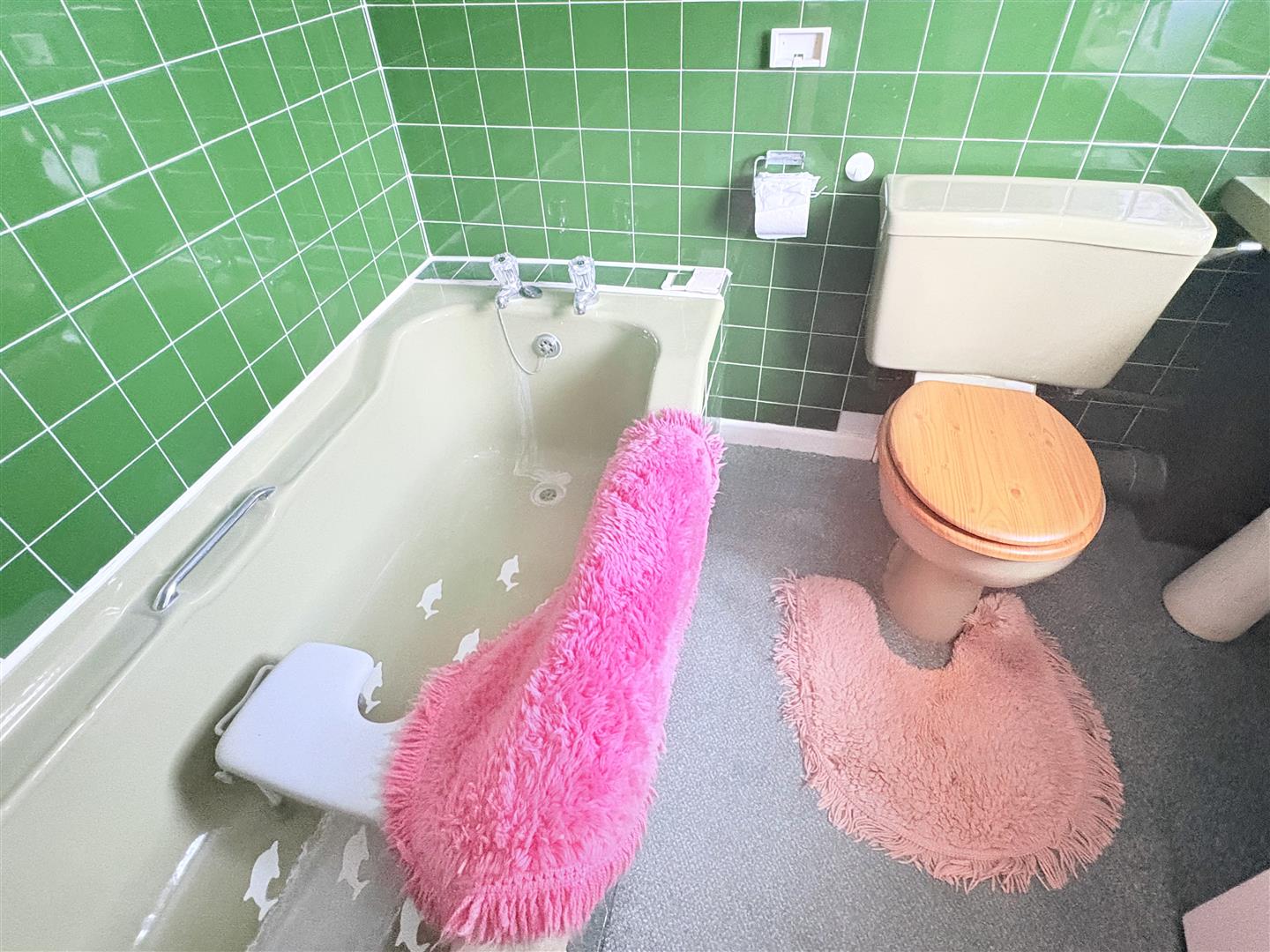 En-Suite Bathroom - Textured ceiling, window to rear elevation, suite comprising panel bath, W.C, pedestal wash basin, fully tiled walls.