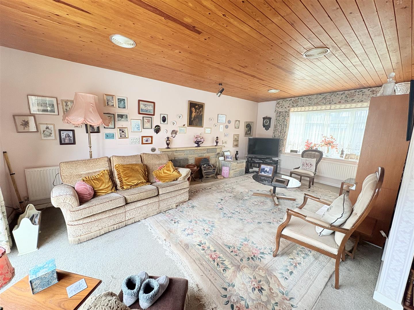 Lounge - 5.986 x 3.565 (19'7" x 11'8") - Pine clad ceiling, bay window to front elevation, patio doors to rear garden, feature fire surround, radiator.