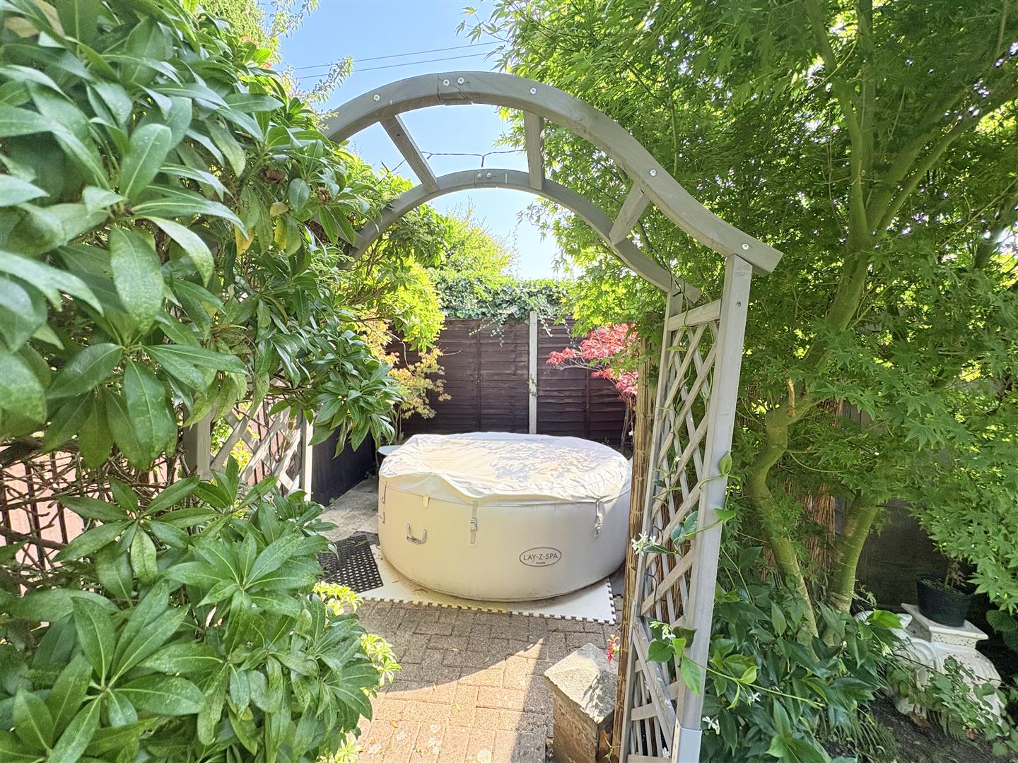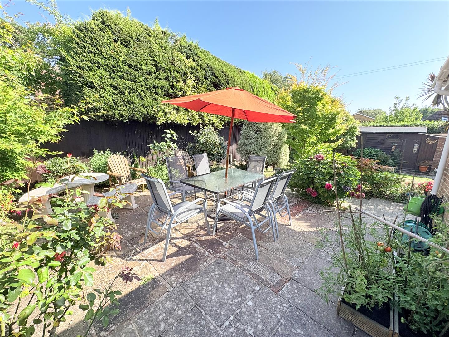 Rear Garden - A beautiful fully enclosed rear garden borderd by brick walling and fencing, offering a high degree of privacy and seclusion. The main area is laid to lawn with a south facing aspect which is bordered by flowers and shrubs. There is a secret garden area currently housing a hot tub, outside tap and pedestrian timber gate to front driveway and rear access door into garage.