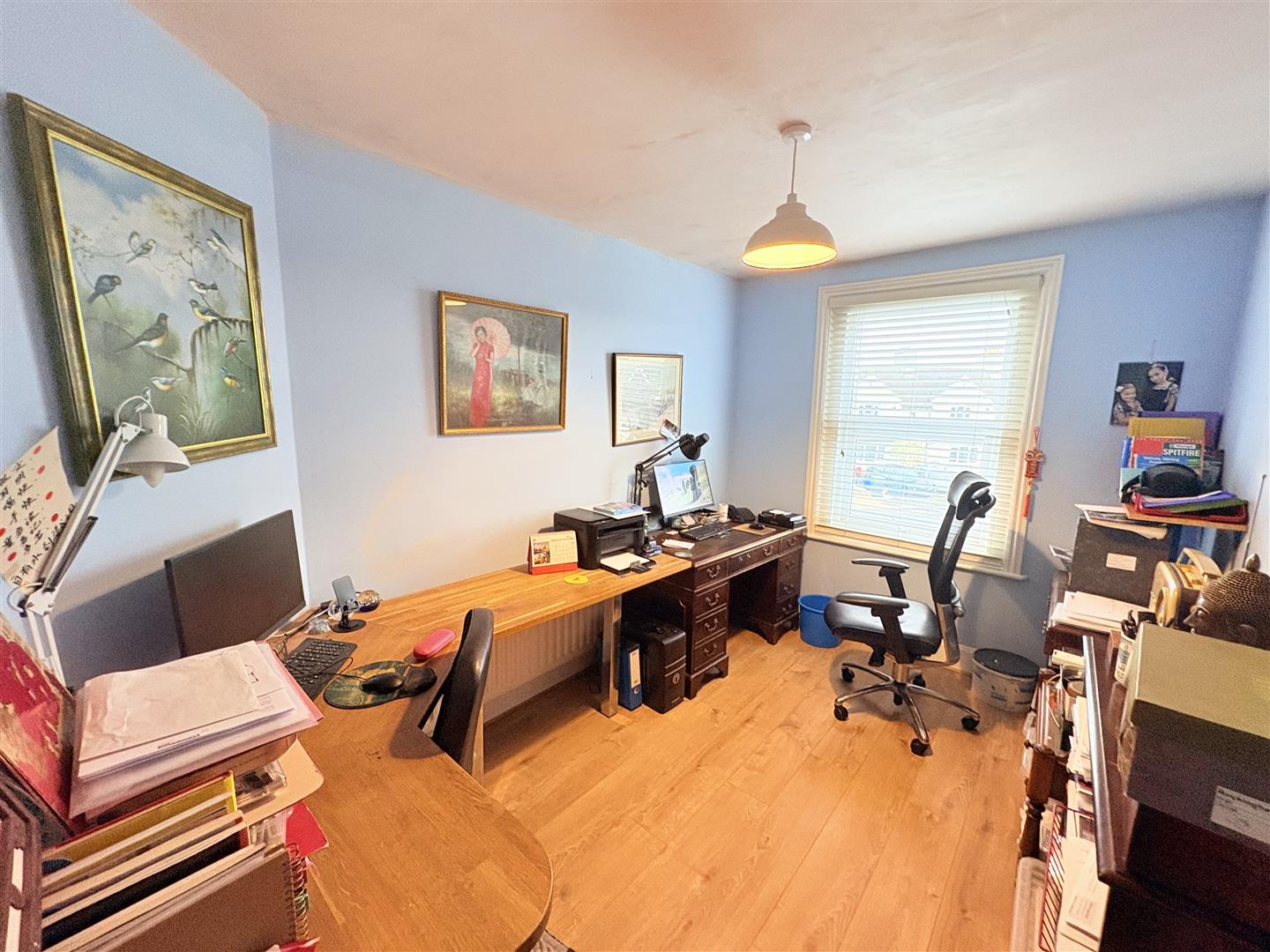 Dining Room - 3.89 x 3.68 max (12'9" x 12'0" max) - Skimmed ceiling, window to rear elevation, picture rail, wooden flooring, radiator.