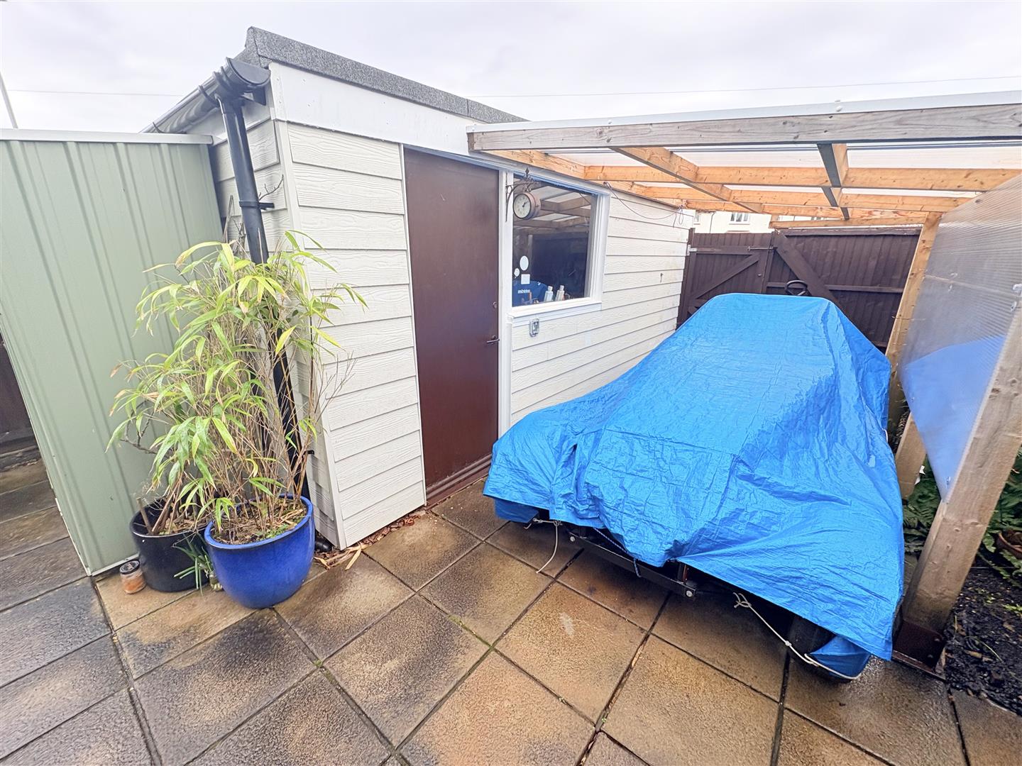 Rear Garden - A courtyard style garden laid to low maintenance paving with flower borders, outside tap and power point, access to carport and pedestrian door into garage.