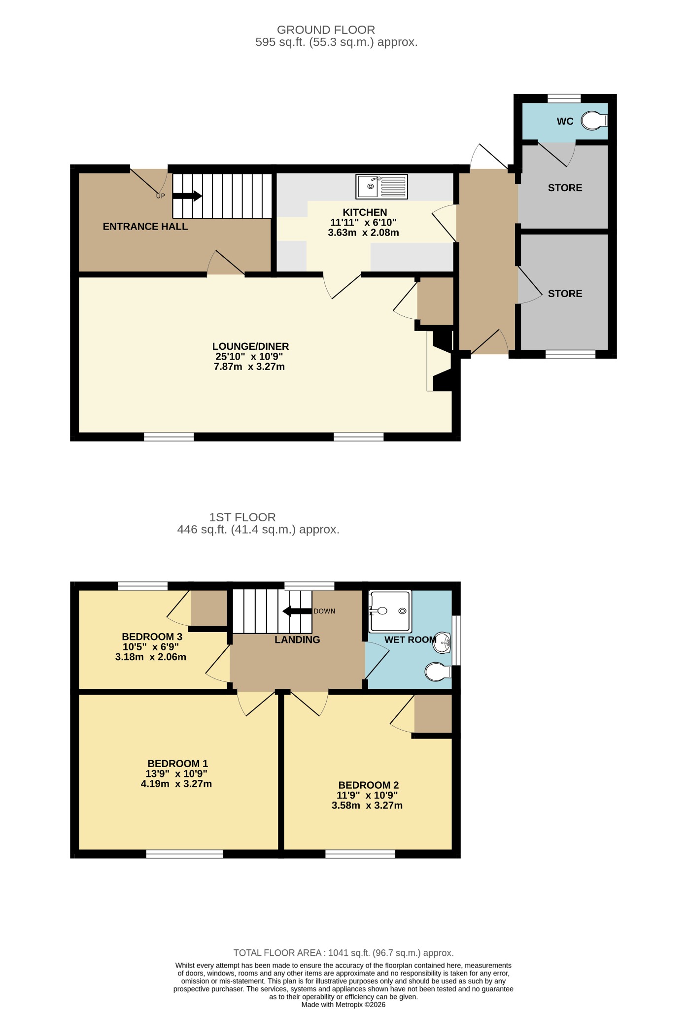 Double glazed door to front elevation and part glazed door to rear garden. Two storage rooms and WC.
