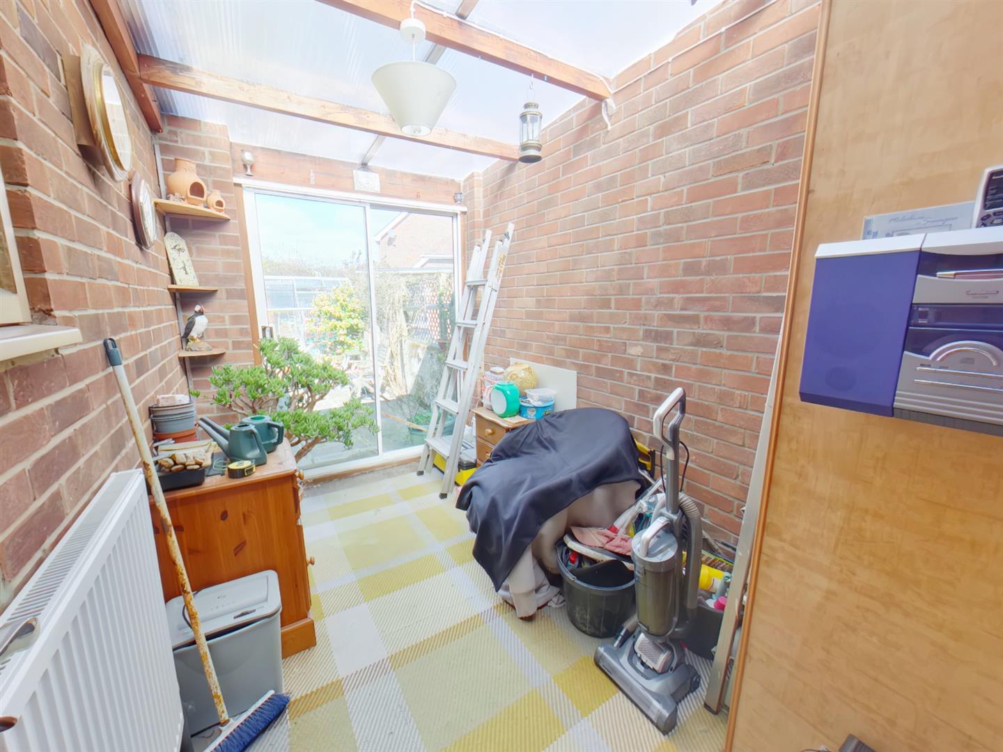 Sunroom - 3.28 x 1.95 (10'9" x 6'4") - Constructed from brick with polycarbonate roof, radiator. sliding patio door open to rear garden.