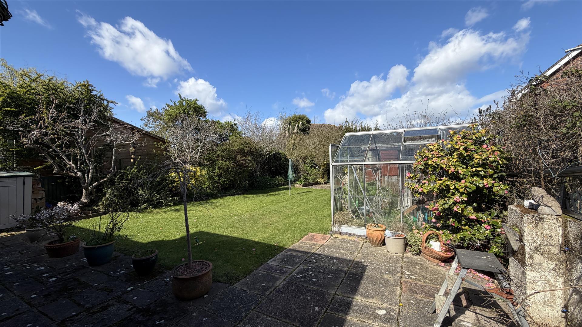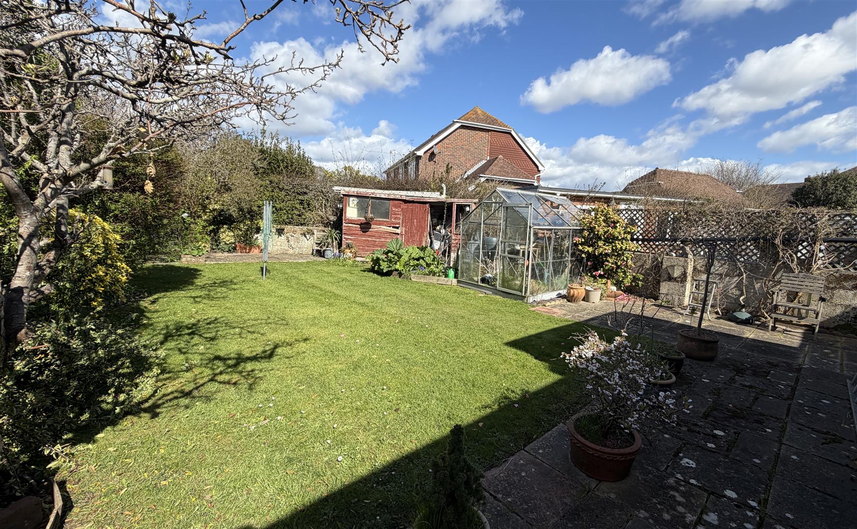 Rear Garden - A beautifully enclosed private rear garden mainly laid to lawn with further area laid to patio, shrub boarders, large shed and greenhouse.