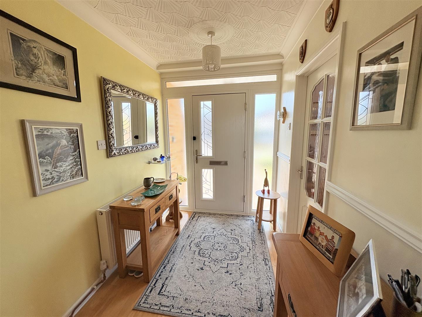 Entrance Hallway - Textured coved ceiling, access to under stairs storage cupboard, radiator.
