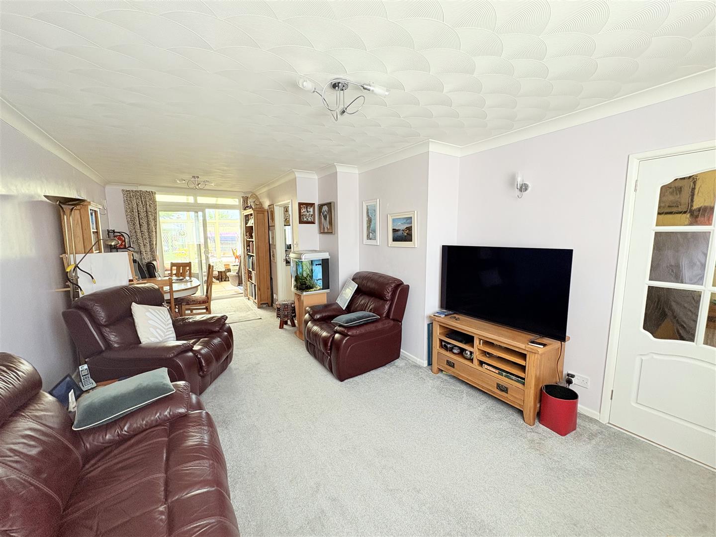 Lounge/Dining Room - 7.62 x 3.15 nar 2.64 (24'11" x 10'4" nar 8'7" ) - Skimmed coved ceiling, window to front elevation sliding patio door to conservatory, television point, telephone point, 2 x radiators.