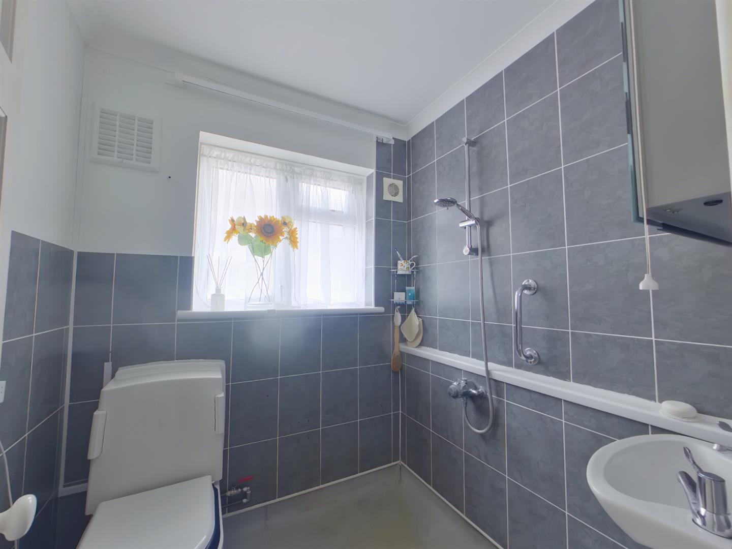 Wet Room - 5' 8'' x 5' 5'' (1.72m x 1.65m) - Skimmed coved ceiling, window to side elevation, Closomat combination toilet with bidet and dryer, wash hand basin, wet room floor with shower head over, extractor fan, heated towel rail.