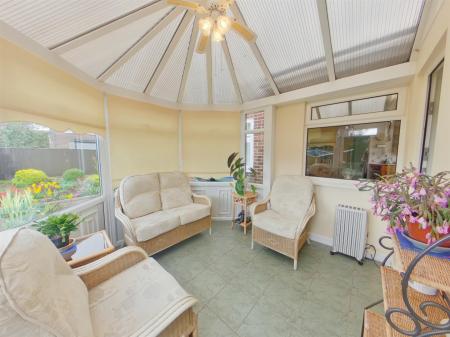 Conservatory - 9' 8'' x 9' 5'' (2.95m x 2.86m) - Constructed under a poly carbonate roof with PVCu double glazed elevations with door open to rear garden.