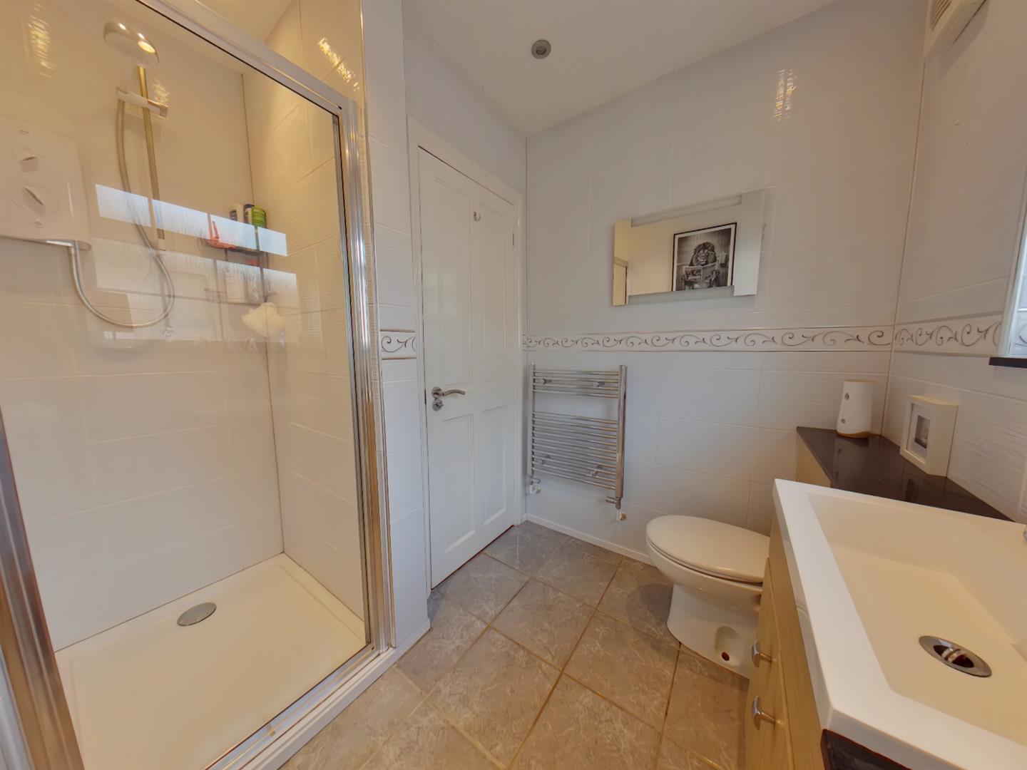 Shower Room - 2.47 max into shower x 1.88 (8'1" max into shower - Skimmed ceiling with spot lights, PVCU double glazed window to side elevation, white suite comprising WC, vanity wash basin, heated towel rail, extractor fan., shower cubicle with electric shower over.