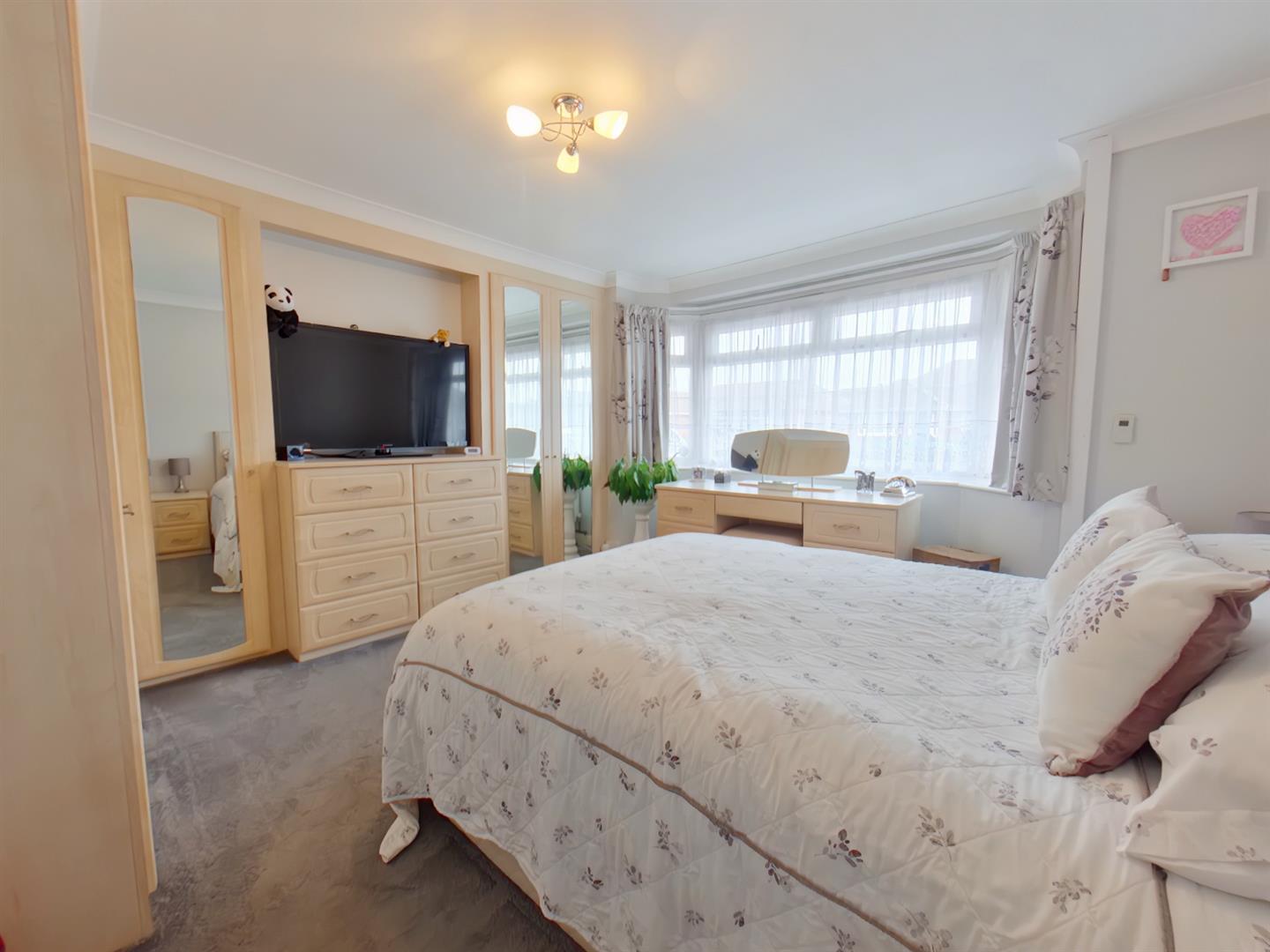 Bedroom 1 - 4.13 x 3.93 (13'6" x 12'10") - Skimmed ceiling, PVCu double glazed bay window to front elevation, radiator, fitted wardrobes and draws.
