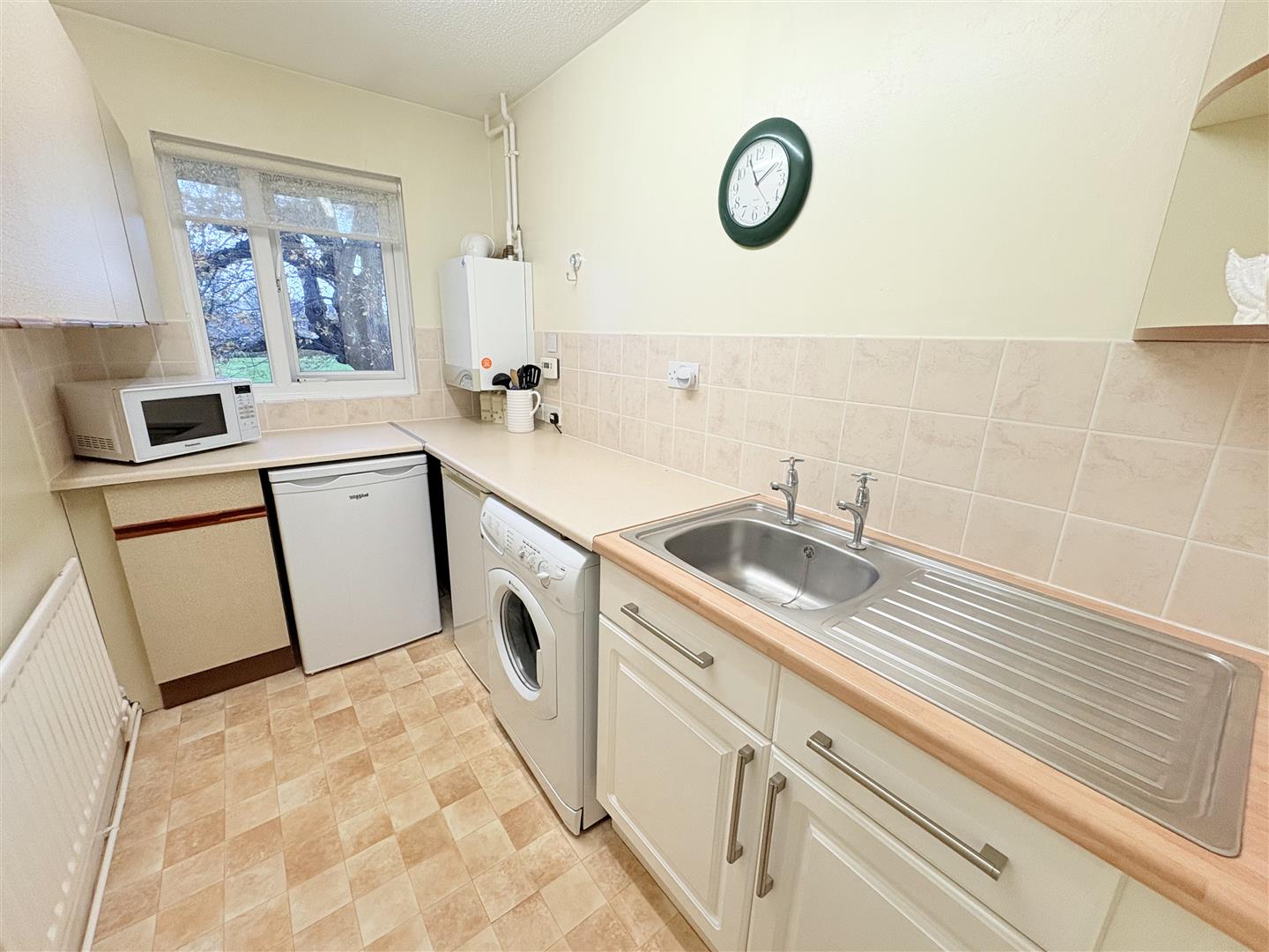 Kitchen - 2.84m x 1.65m (9'4" x 5'5") - Double glazed window to rear elevation with pleasant views over the common, inset stainless steel sink, plumbing for washing machine, space for fridge and freezer side by side, gas point for cooker (if required), wall mounted boiler (approximately 10 years old and serviced yearly).