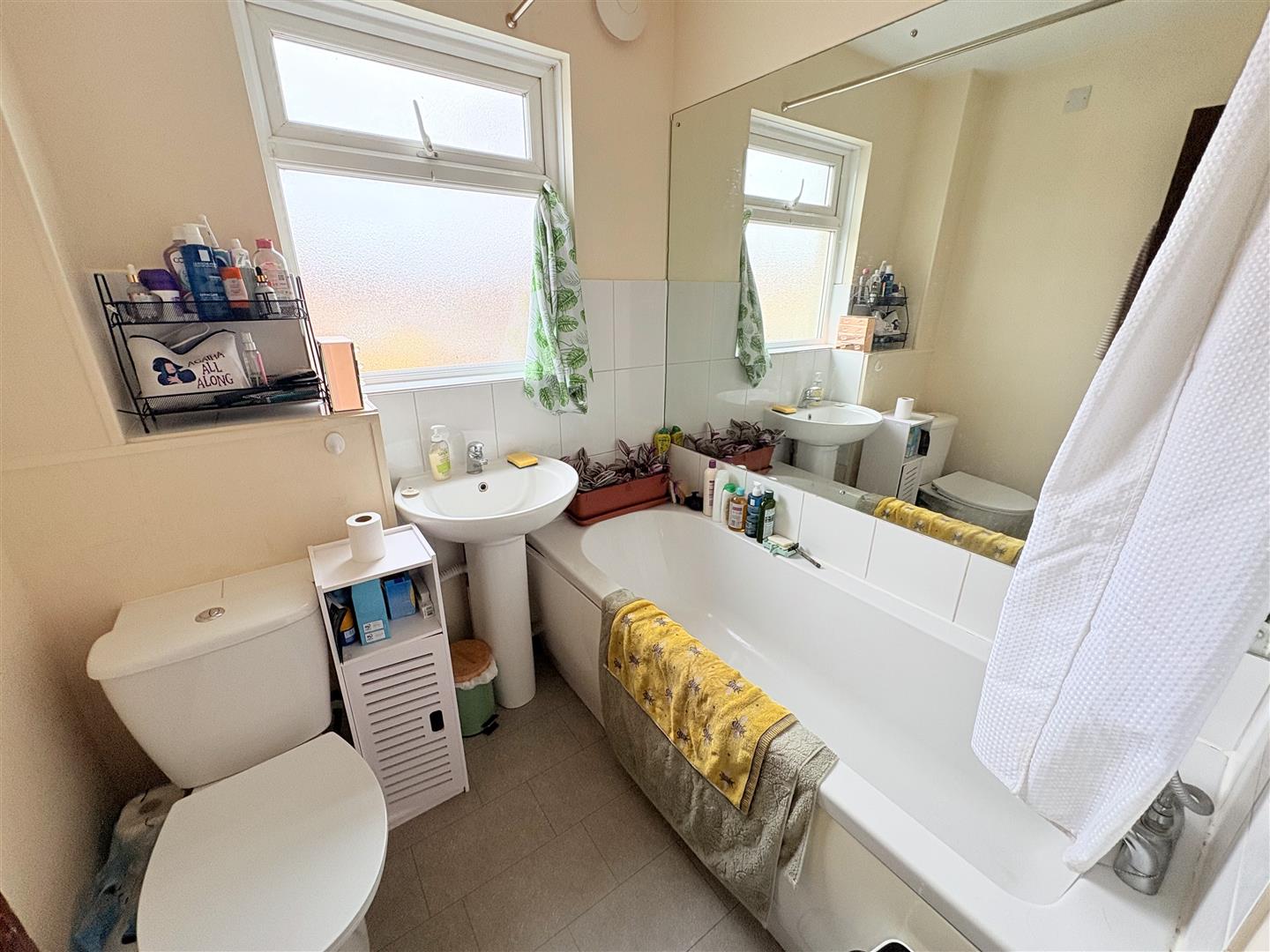 Bathroom - 6' 3'' x 5' 10'' (1.90m x 1.78m) - Textured ceiling, PVCu double glazed window to side elevation, suite comprising panel bath, W.C, pedestal wash basin, extractor fan.