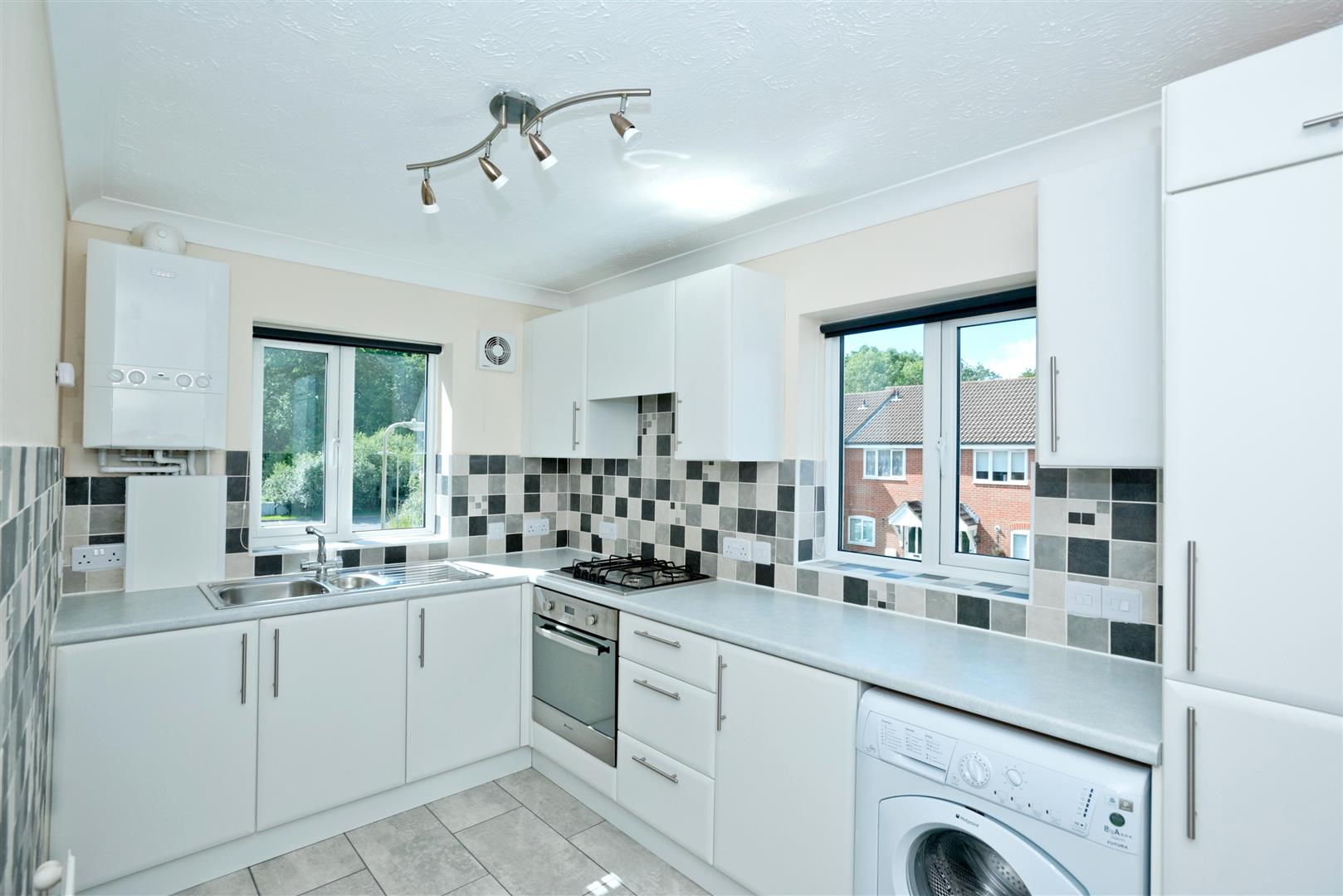 Dual aspect kitchen enjoying integrated oven, hob & fridge freezer with space for washing machine