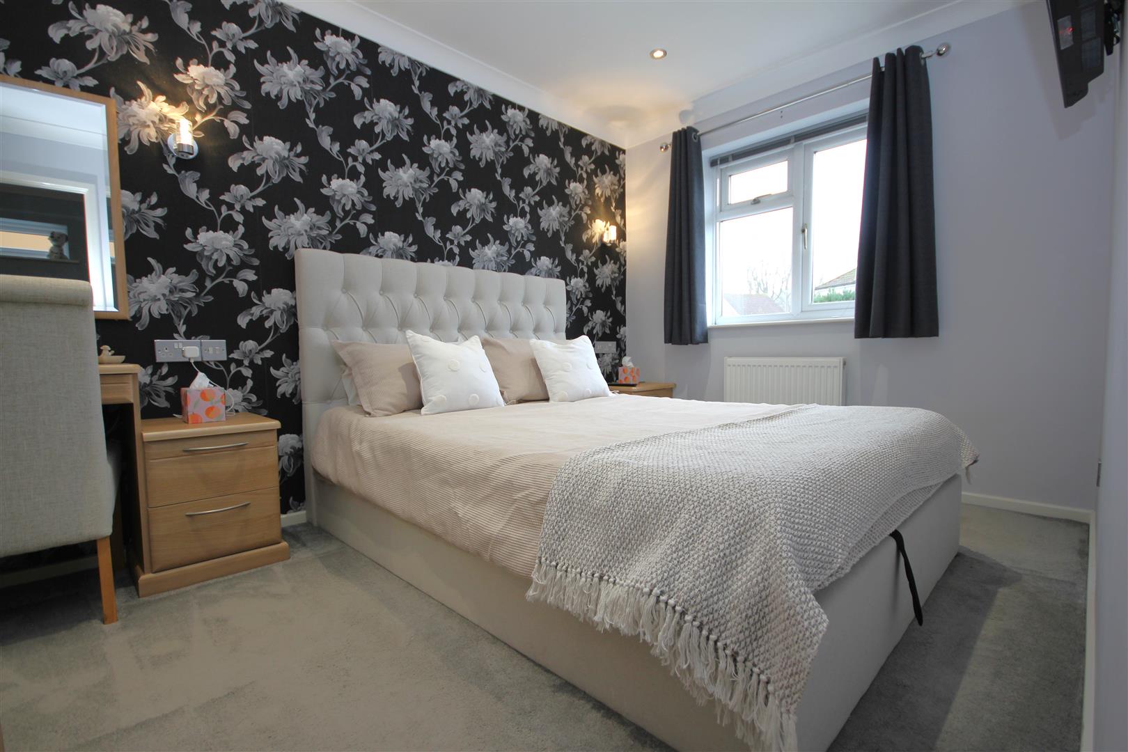 Guest bedroom benefitting from built in wardrobes, bedside tables & chest of drawers