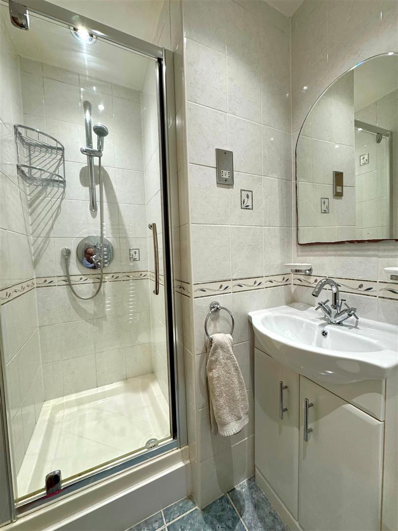 En-suite shower room to the main bedroom comprising of three piece white suite