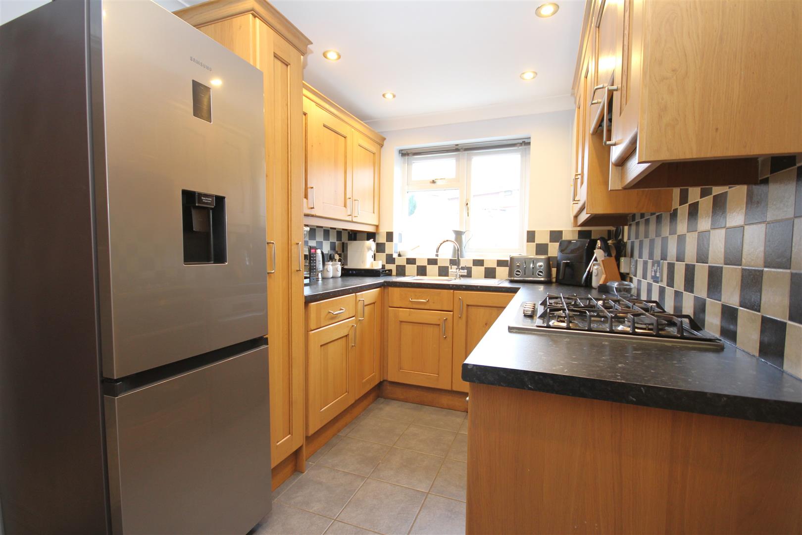 Fitted kitchen enjoying built in oven/hob with space for additional appliances