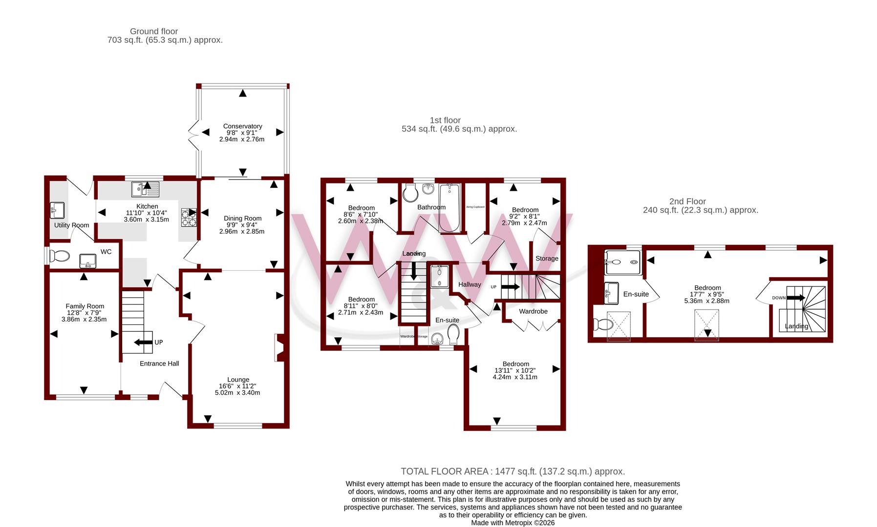 Three additional bedrooms to the first floor with two benefitting from built in storage