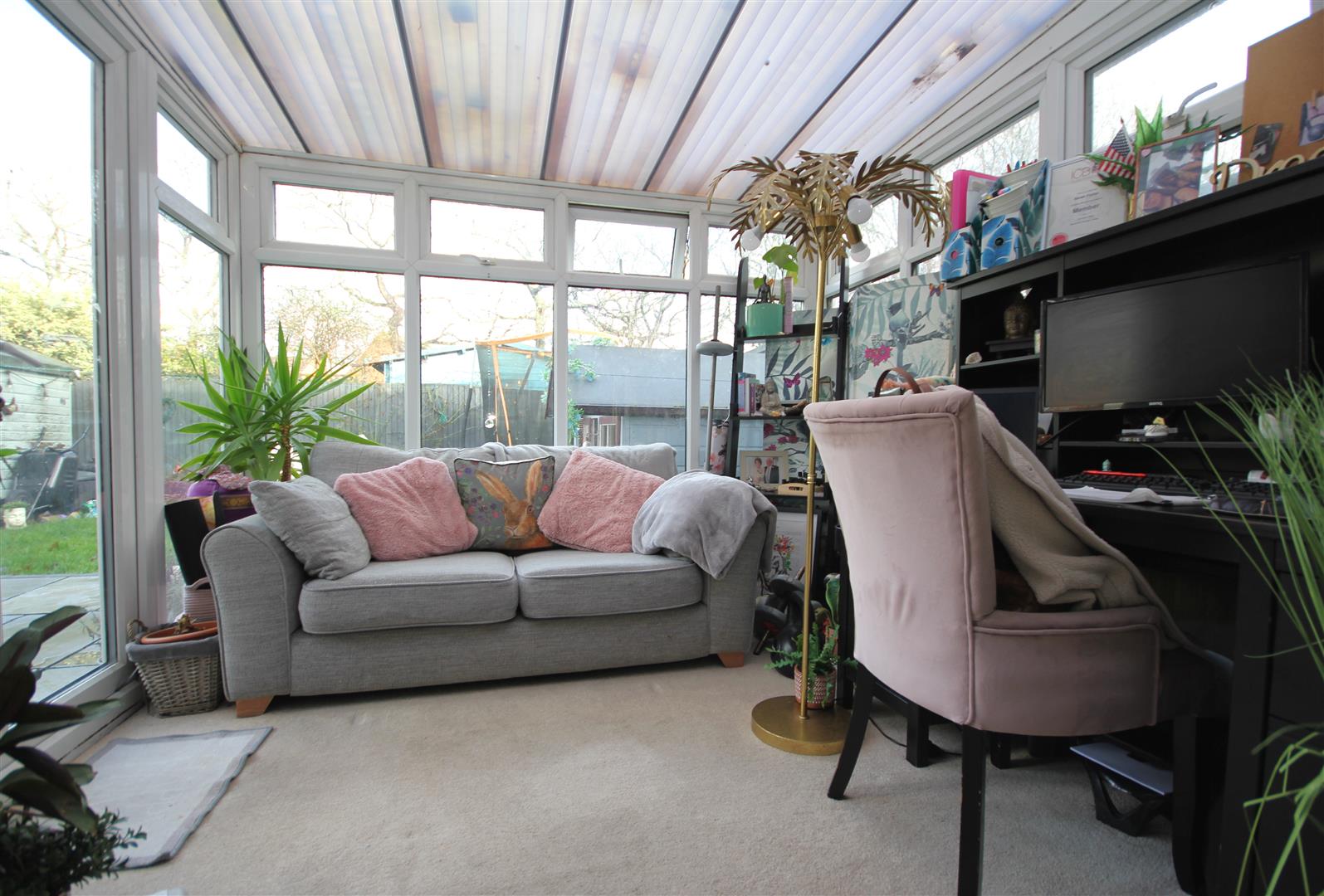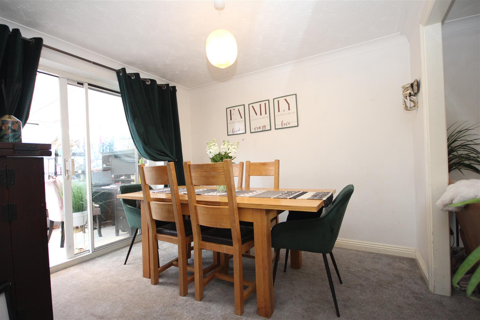 Dining room with patio doors opening into the conservatory