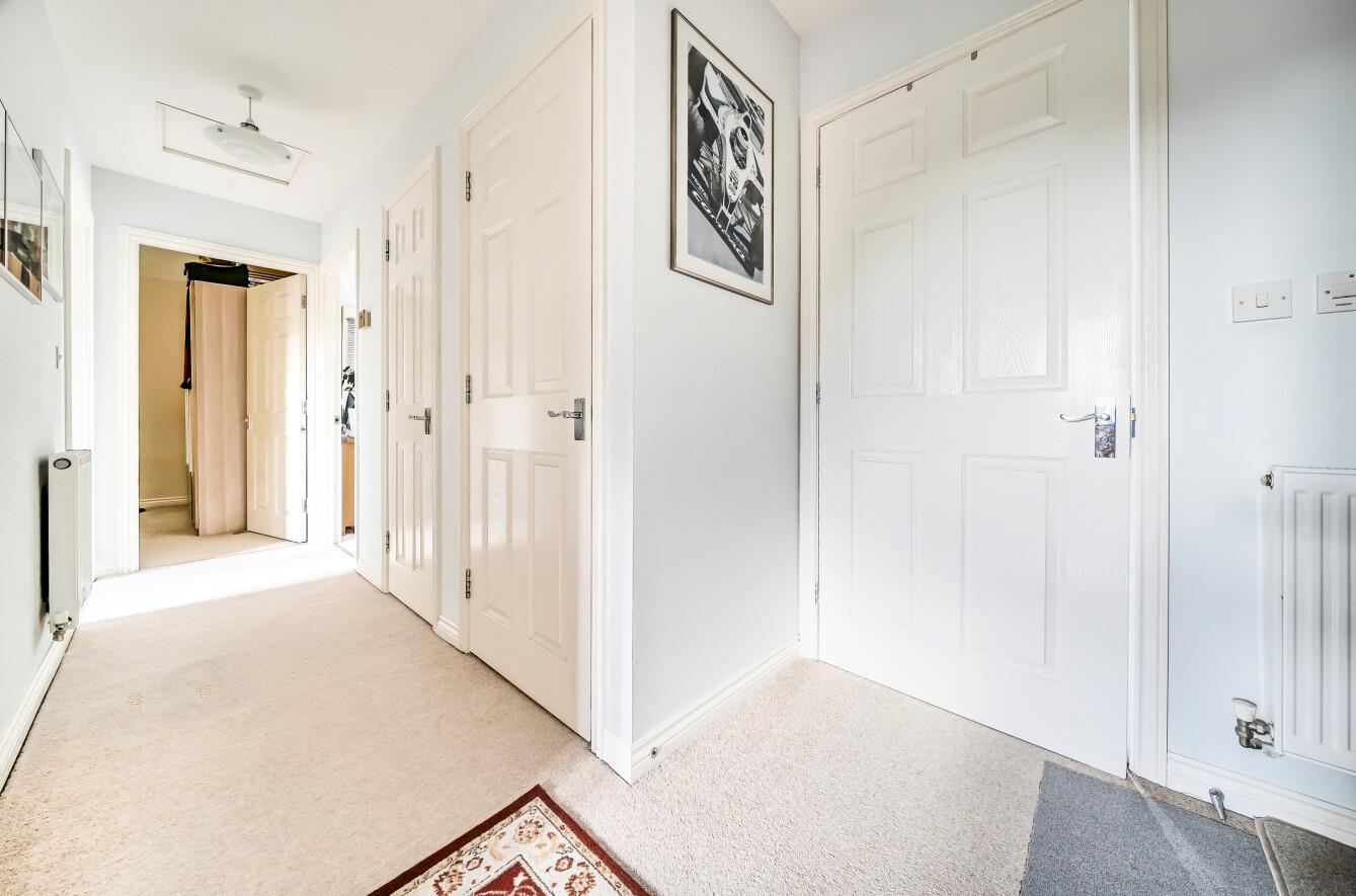 Entrance hallway boasting two built in storage cupboards