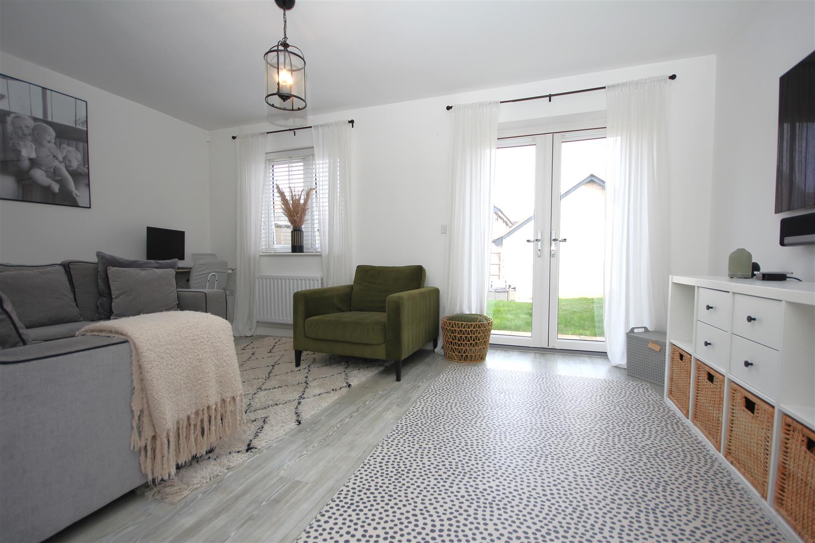 Lounge with double doors opening out to the rear garden & built in storage cupboard