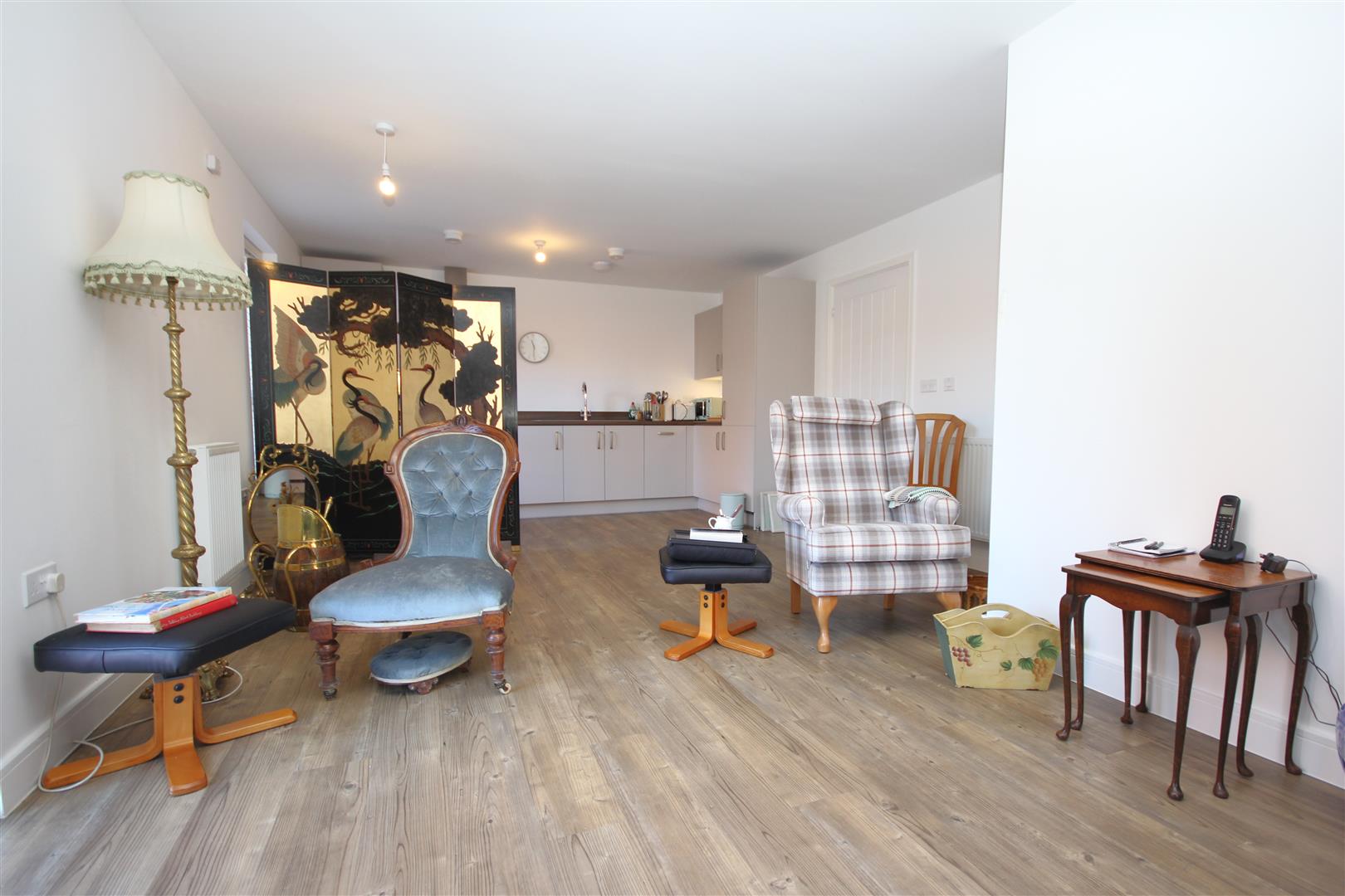Spacious entrance hall enjoying built in storage cupboard & attractive wood effect laminate flooring flowing into the kitchen/dining/living room