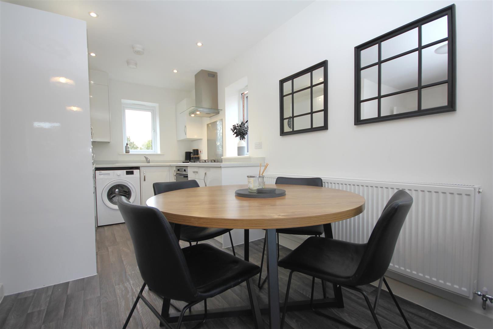 Integrated appliances include oven, hob, fridge/freezer & space for washing machine