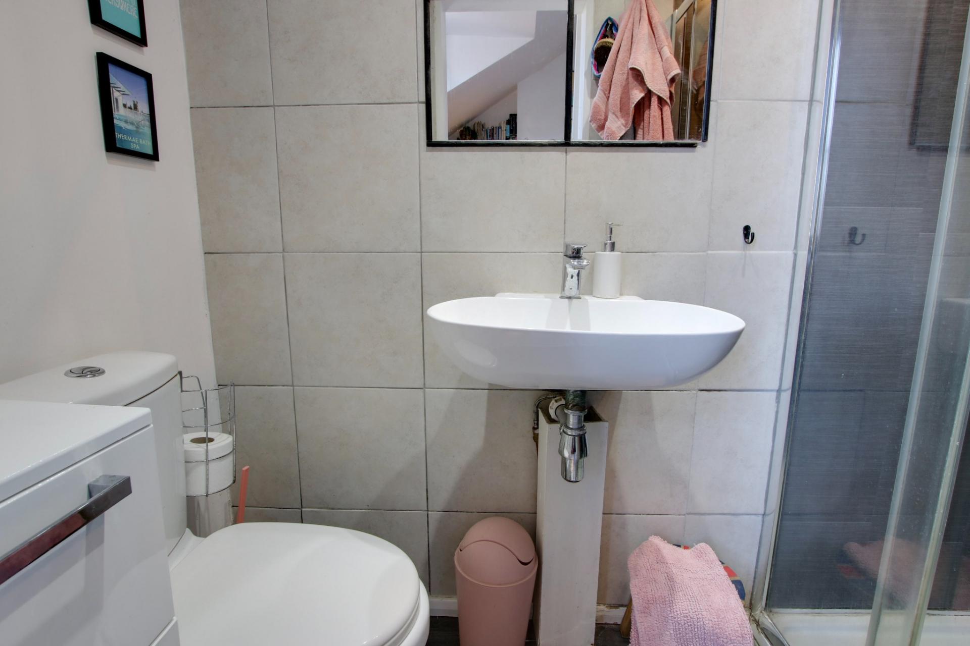 Double glazed window to rear elevation. Panel enclosed bath with shower attachment and mixer taps. Pedestal wash hand basin. Low level WC. Heated chrome towel rail. Extractor fan. Tiled flooring.