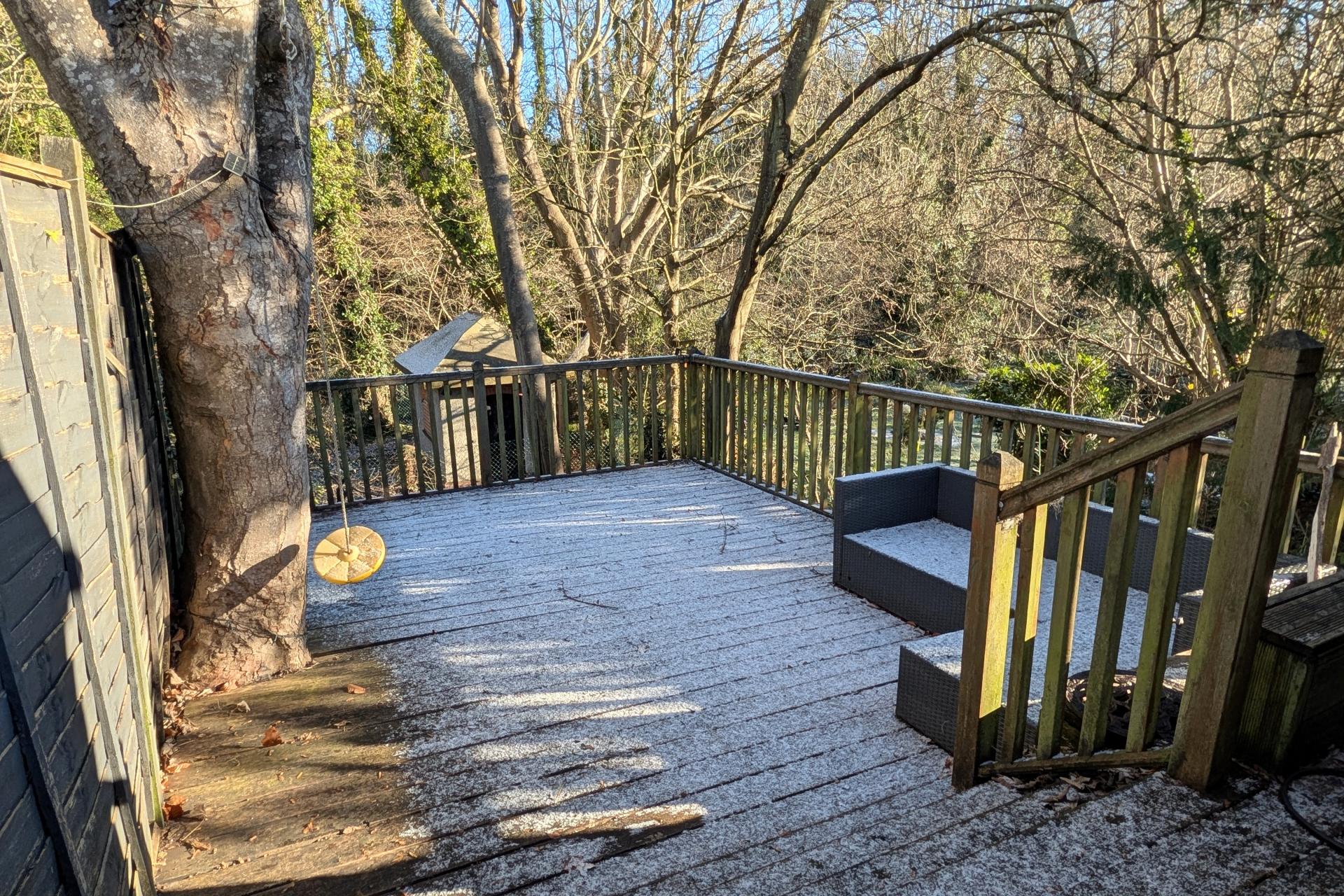 The rear garden is a particular feature of the property and has a patio area adjacent to the house. The remainder of the garden can be found mainly laid to lawn with flower and shrub borders. There is a decking area with a timber summerhouse and steps leading down to a further larger decking area providing a wonderful seating area to enjoy the wooded backdrop and stream behind the property.