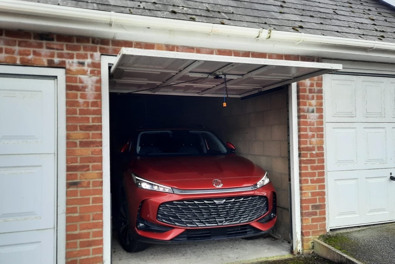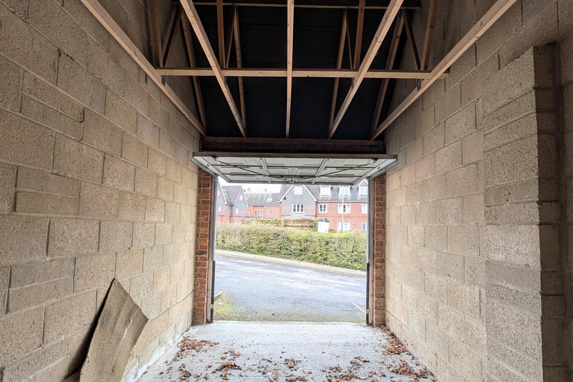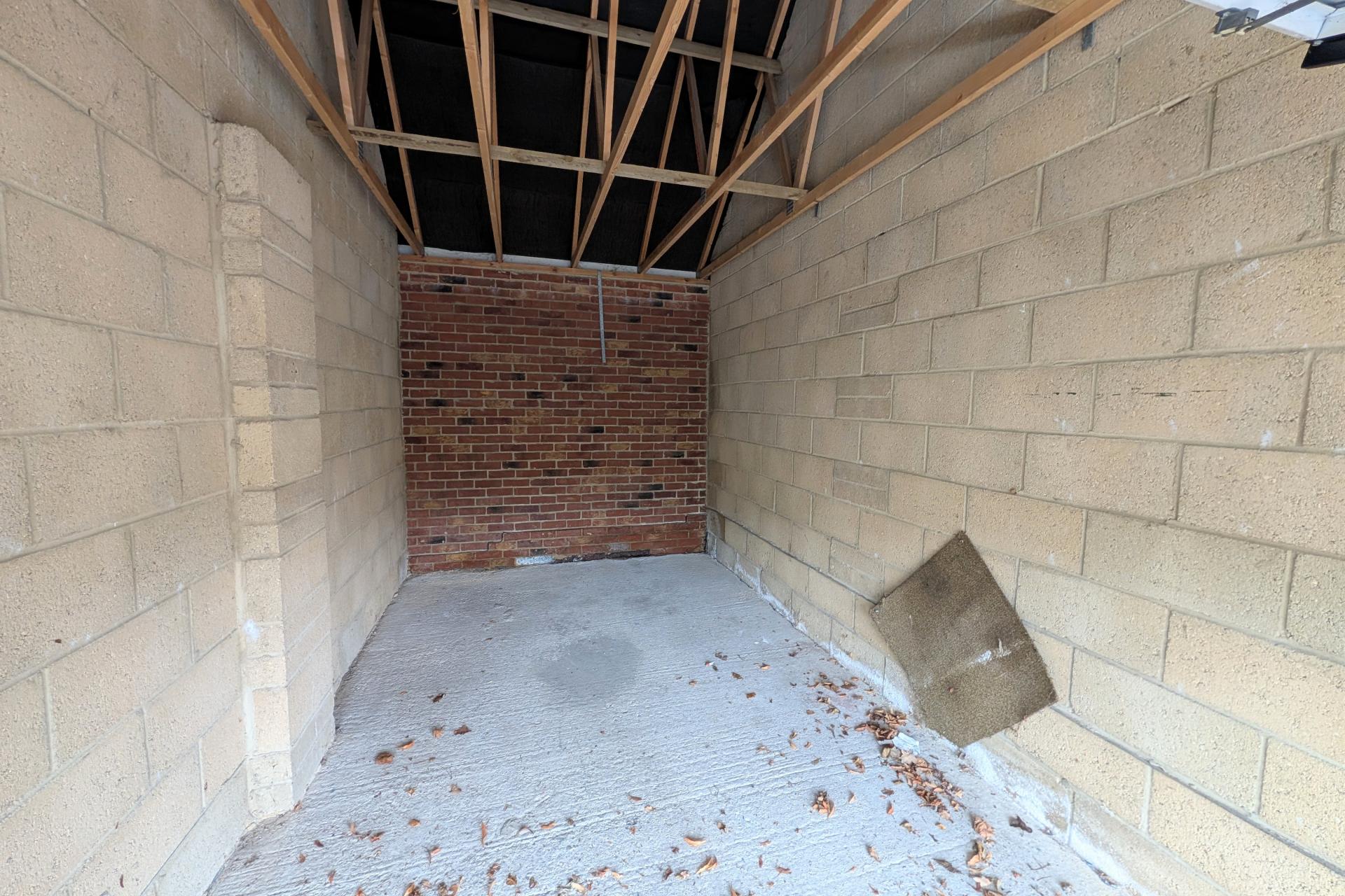 A brick and block built garage accessible via up and over door with a trussed and tiled roof providing further storage w...