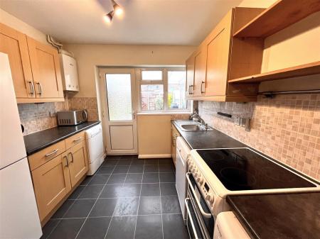 Kitchen - 10' 0'' x 8' 11'' (3.05m x 2.72m) - Fitted with modern units, inset stianless steel sink unit, space for cooker, space for upright fridge freezer, space for dishwasher, space for tumble dryer, tiled laminate flooring, access to larder cupboard, double glazed door and window to rear garden.