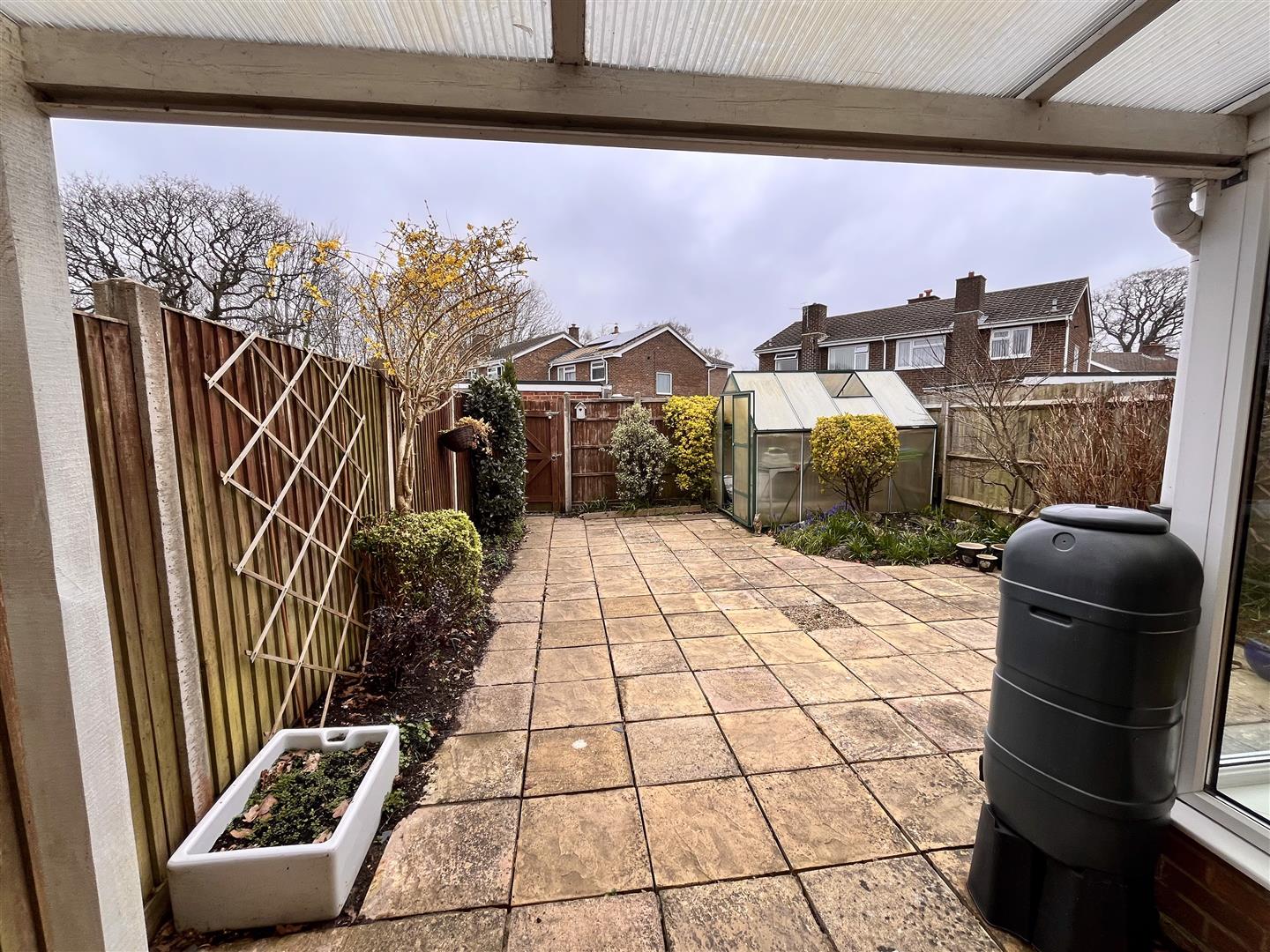 Rear Garden - Area laid to low maintenance patio, covered pergola providing shade, fully fence enclosed, outisde tap, rear pedestrian access gate, greenhouse.