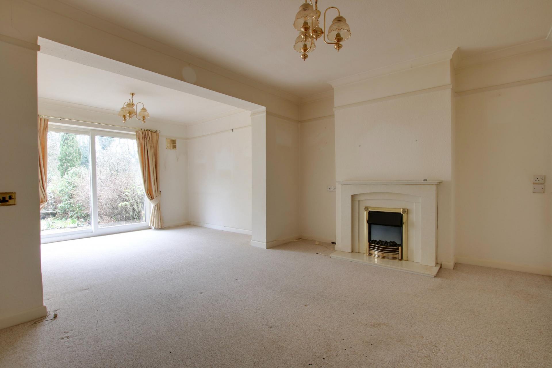 Double glazed patio doors to rear garden. Chimney breast with feature fireplace and electric fire. Two radiators. Picture rail.