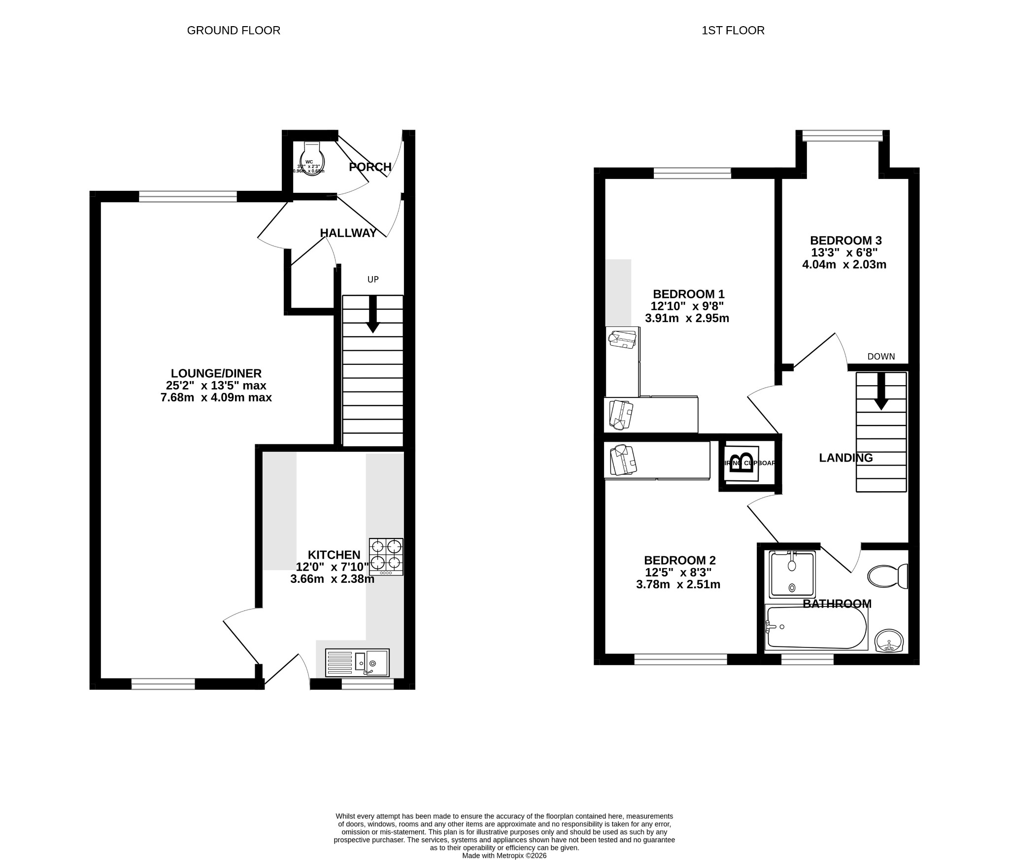 Access to loft space. Cupboard housing gas boiler. Doors to: