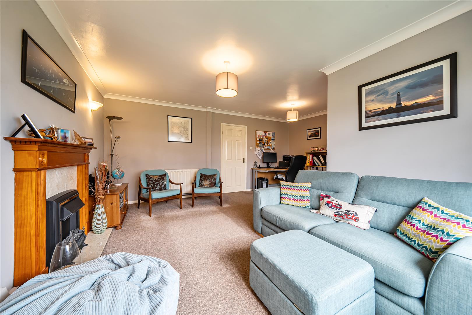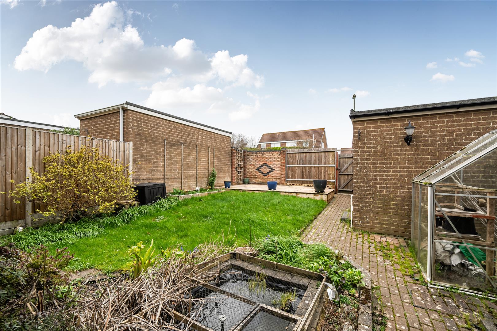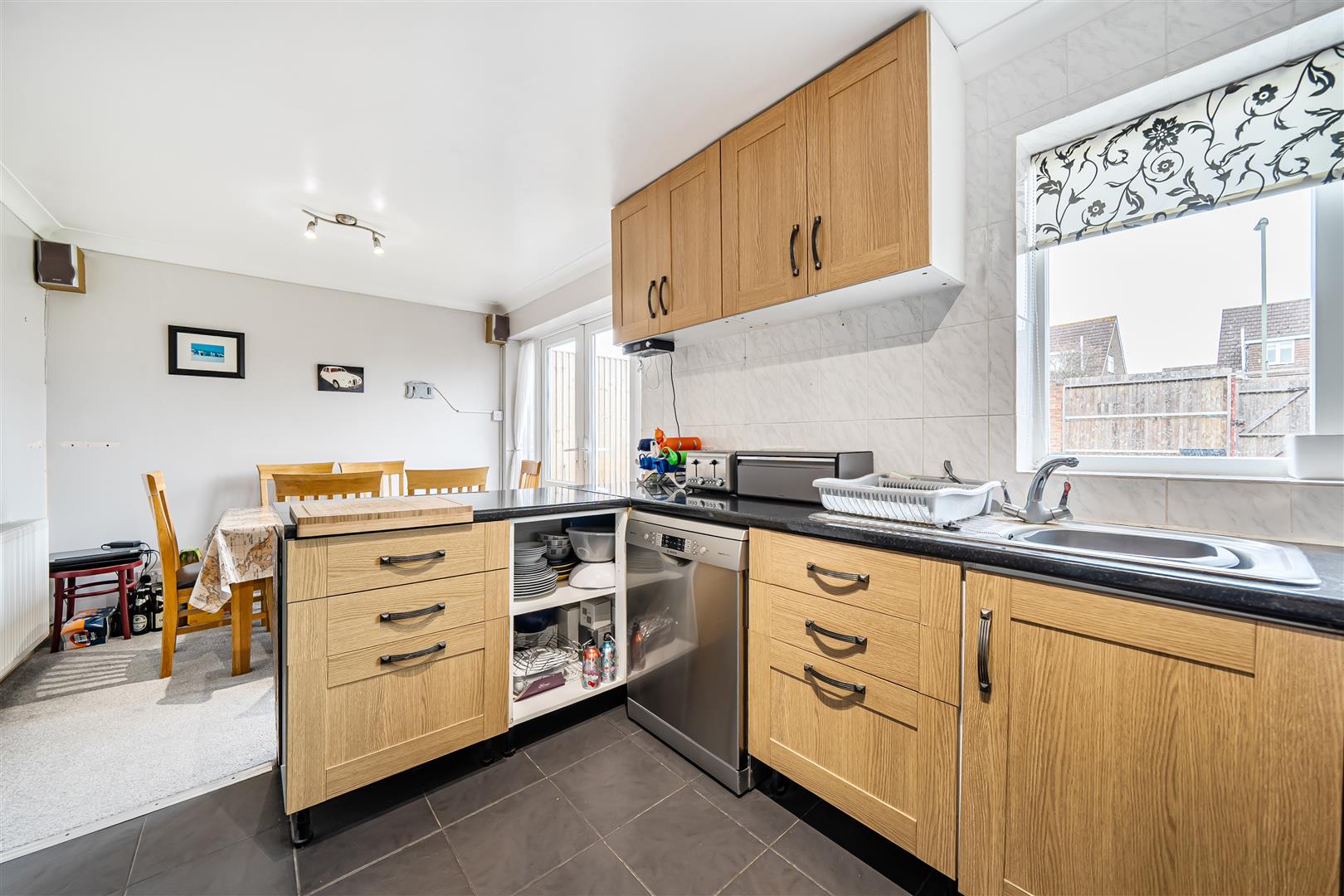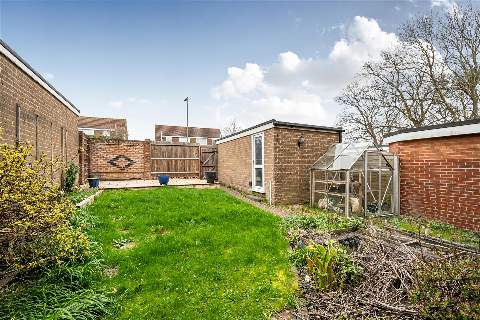 The property was built in the 1970's with some updating works needed and is positioned with a lovely south westerly outlook over a green open space; on entering an inner lobby draws you into the Sitting Room where a large picture window fills the room with sunlight from the south and which centres on an electric fire. A further hallway with a side door to outside draws you into the Kitchen/Dining Room to the rear of the house; the Kitchen has been fitted with ample cupboards with a 4-ring gas hob, oven and grill and the Dining Room offers plenty of space for formal dining and with French doors leading to outside. A Cloakroom completes the ground floor. Upstairs there are three bedrooms, two of which are doubles, and they are complemented by a large Family Bathroom with a lovely roll top bath and a separate shower. The back garden has an area of lawn with a feature pond, a greenhouse and large deck terrace to the rear perfect for capturing the evening sun. A pathway alongside the garden leads to the back garden with access to the parking area for three cars and the single garage.