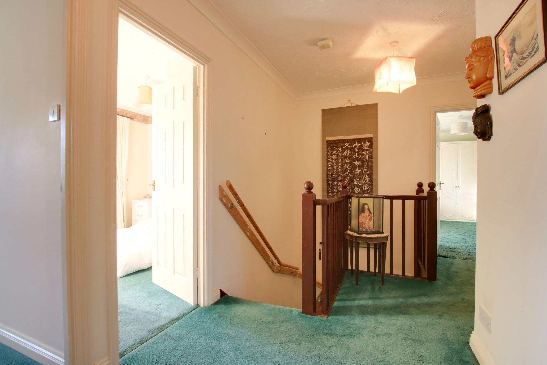 Access to loft space. Airing cupboard housing hot water cylinder. Radiator. Coved and textured ceiling. Doors to: