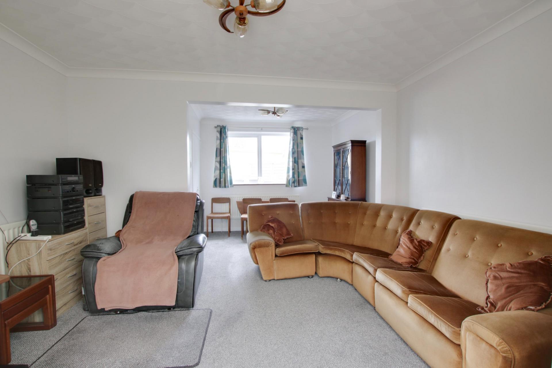Double glazed window to front elevation and double glazed French doors to conservatory. Two radiators. Coved and textured ceiling.