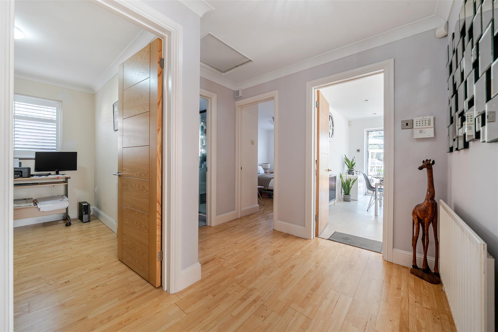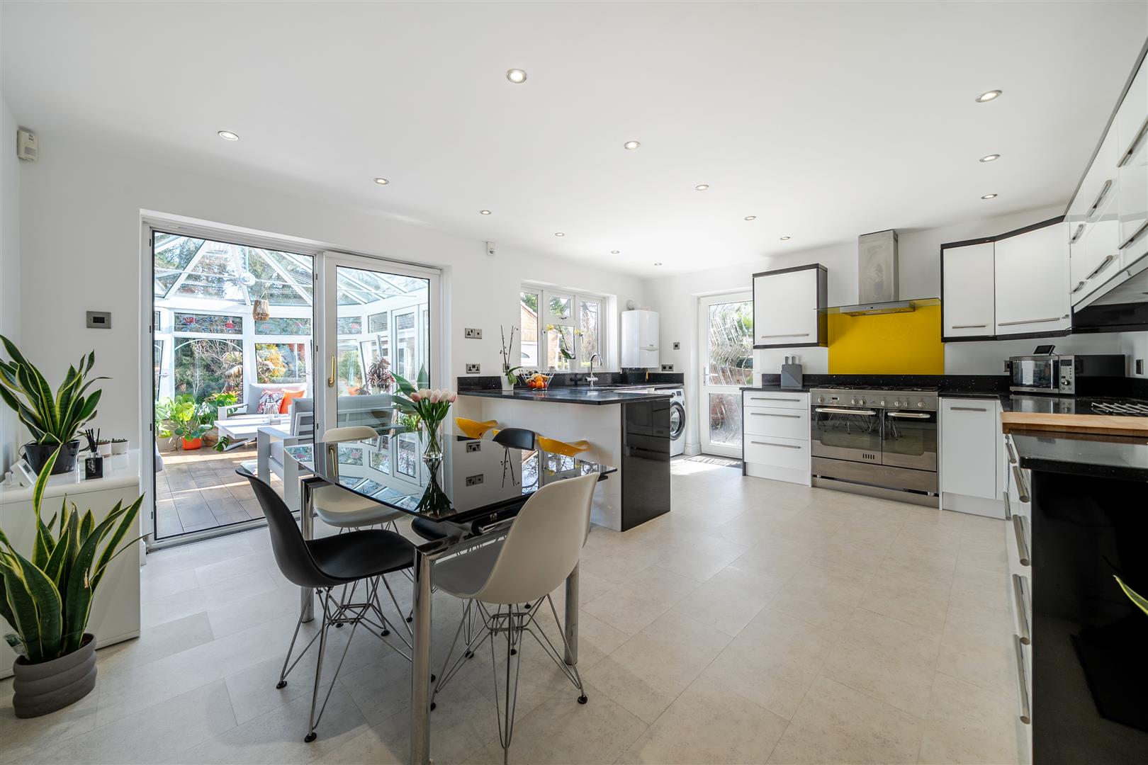 Wooden floors Sitting Room, Hallway and all Bedrooms; Amtico flooring to Kitchen/Breakfast Room; Ceramic wood effect tiled floor with underfloor heating to Conservatory; Fully tiled contemporary Shower Room; Plantation shutters to Sitting Room, all Bedrooms and Shower Room; Valliant boiler serviced annually; Kitchen with breakfast bar and appliances to include New World range cooker, fridge, freezer and dishwasher; Alarm system and CCTV; Stunning, mature gardens; Tandem garage with extensive driveway parking; Convenient location close to train station and town