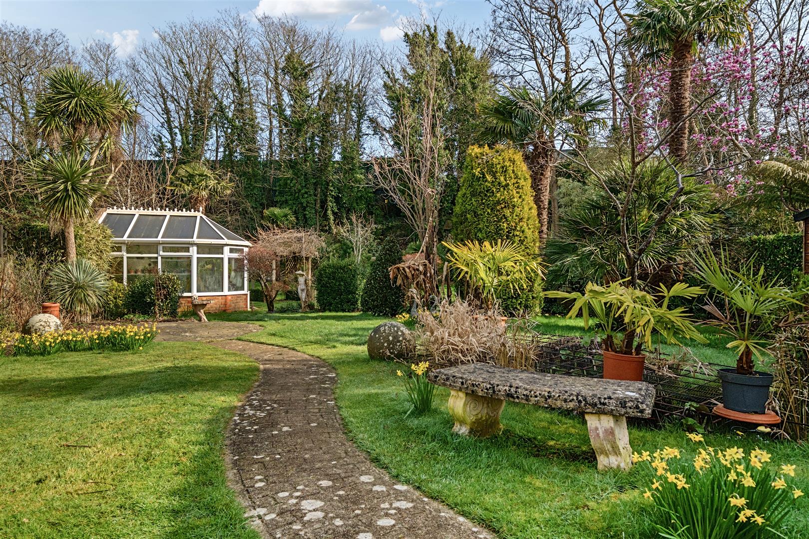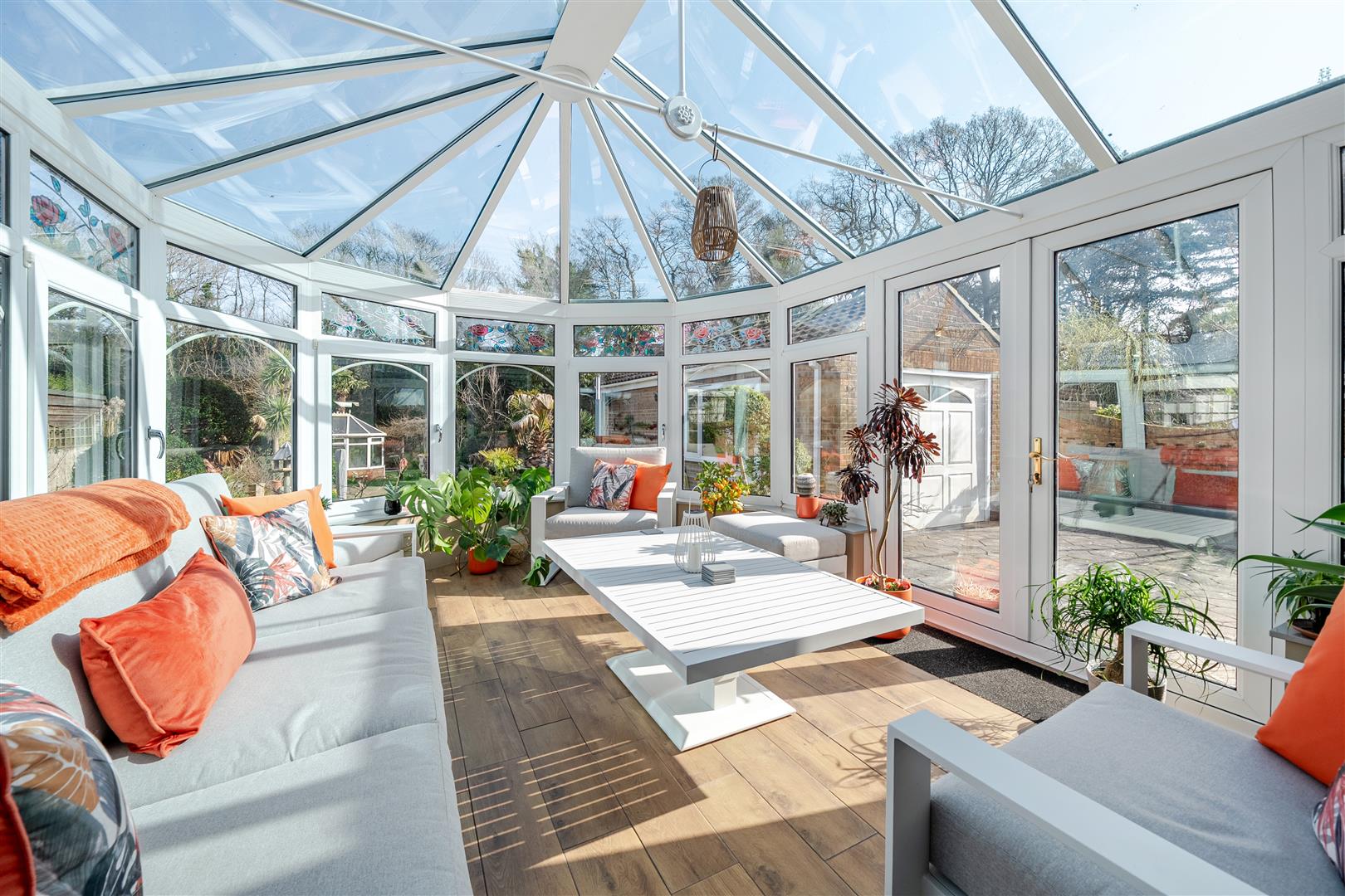The property is walled to the front with an open driveway providing excellent parking and leading along the side of the property to the detached tandem garage and the glorious gardens. The bungalow itself extends to approximately 1300 square feet and is particularly light and airy offering flexible accommodation with my clients utilising the 4th bedroom a study. The bungalow was built with a view to potentially going up into the loft space so offering potential if additional space is needed. The Sitting Room centres on a raised contemporary electric heater and is dual aspect. The Kitchen/Breakfast Room is of excellent proportions with extensive cupboards with quartz tops, boiling tap and a range of appliances. Sliding patio doors lead to a delightful Conservatory overlooking the gardens. The gardens are a particular selling feature of this delightful property; they are simply stunning with a glorious backdrop of trees, extending to 0.23 of an acre in total. There is a good sized terrace immediately adjacent to the rear of the property providing a delightful seating area with steps down to the remainder of the garden, which is laid to lawn with a meandering path leading to further circular terrace and the remainder of the garden. My clients have lavishly landscaped the gardens with well stocked beds of palms ,bamboo, Acers and a feature pond. A mature wisteria clambers over an oak pergola which is adjacent to a brick built greenhouse. There is a further timber shed. The garage is 27ft in length with a gardeners WC and an electric up and over door.