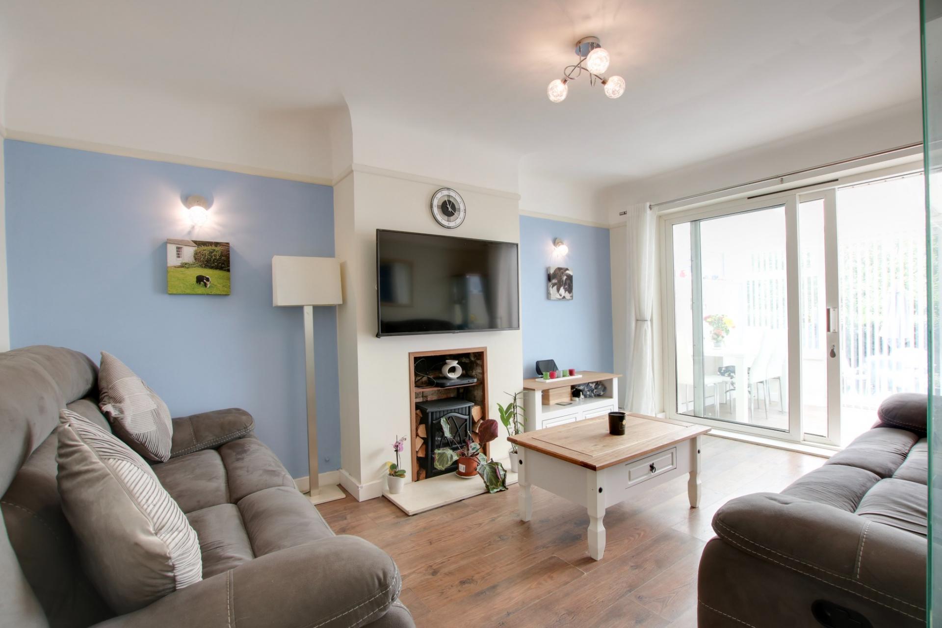 Double glazed patio doors to conservatory. Radiator. Laminate flooring. Chimney breast with electric stove. Picture rail.