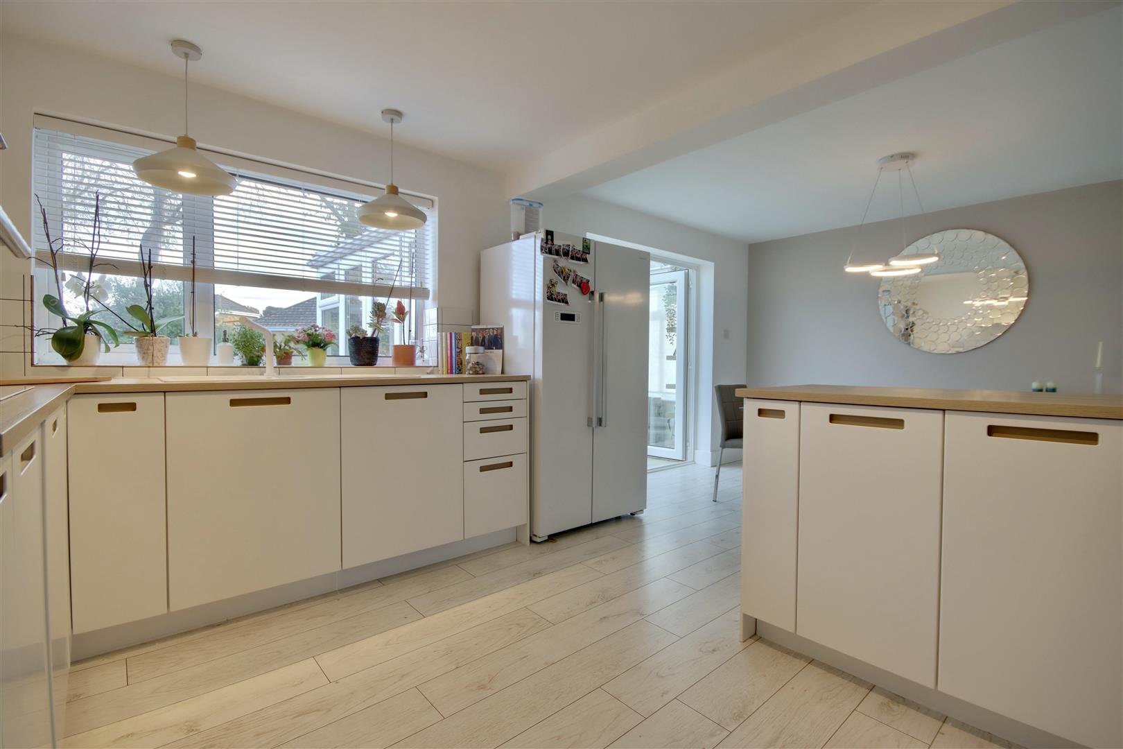 The 19ft kitchen/diner is a fantastic entertaining space, with double doors into the conservatory and views to the landscaped rear garden.