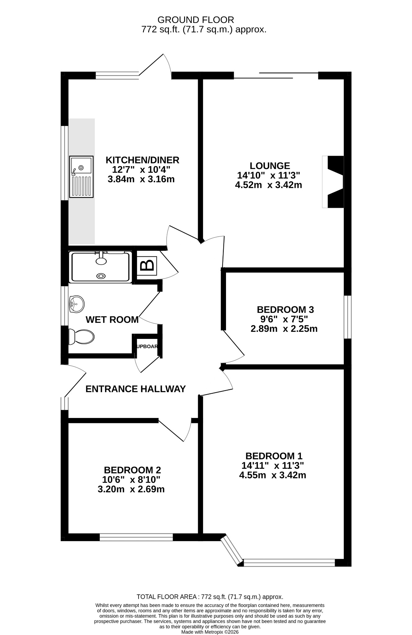 Double glazed UPVC front door with adjoining tall double glazed obscure window to the side aspect. Loft access. Meter cupboard. Radiator. Cupboard with wall mounted 'Vaillant' boiler.
