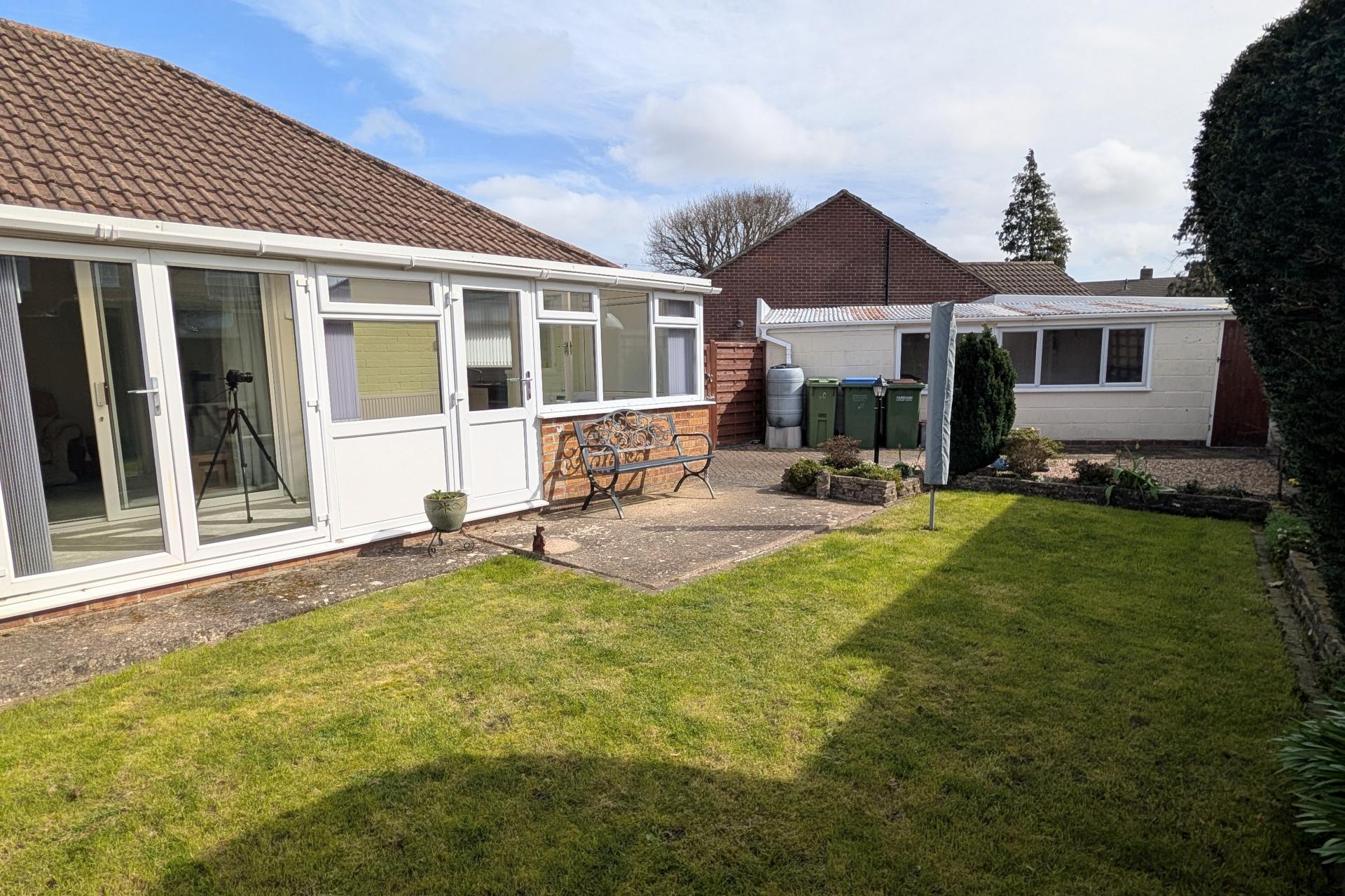 NO FORWARD CHAIN. An immaculate two bedroom semi-detached bungalow located within a popular cul de sac setting set amongst similar style properties to the west of Fareham town centre. The property accommodation briefly comprises; entrance hall, two bedrooms, shower room, a lounge and a kitchen, both lead directly onto the double glazed conservatory which stretches the width of the bungalow and overlooks the well-tended south facing rear garden. A particular feature of the bungalow is its own long driveway, which runs past the bungalow and provides access to the GARAGE and parking for several cars. As sole agents we would highly recommend an early inspection.